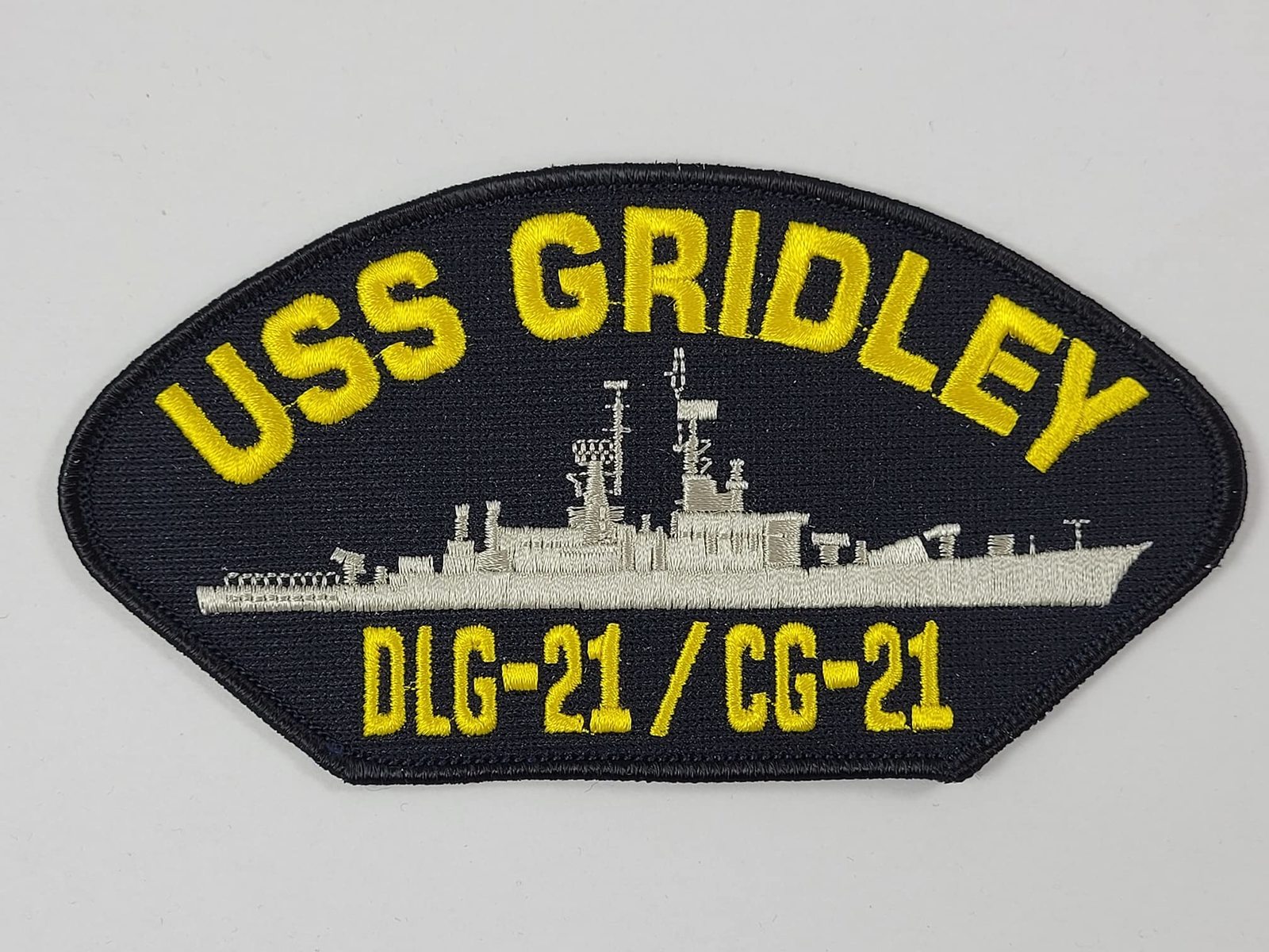 USS GRIDLEY DLG-21/CG-21 SHIP PATCH. Leahy-class guided missile cruiser of the United States Navy. Approx. 6? W x 3? H PATCH. High Quality Embroidered. Excellent Color. Very Durable with Iron On Backing. Great Detail and Stitching for a Jacket or Vest. Great Gift Idea for ANYONE, especially those shipmates who served on the USS GRIDLEY DLG-21/CG-21, or who are interested in its history. HatnPatch Is THE Veteran Family-Owned and Operated Business. We Generally Ship Orders Within 24 Hours And Usually The SAME DAY!