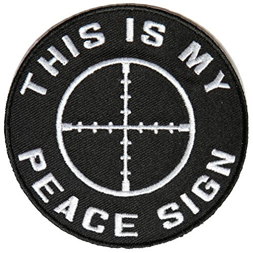 3.5" ROUND PATCH. Quality Embroidered THIS IS MY PEACE SIGN RIFLE SCOPE ROUND PATCH - Color - Durable with Iron On Backing. Great Detail and Stitching for a Jacket or Vest. Great Gift Idea for anyone. Veteran Owned and Operated Business - Retired Marine.