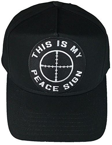 THIS IS MY PEACE SIGN HAT - BLACK - Veteran Owned Business. BLACK Cap High Detail and Impact - THIS IS MY PEACE SIGN HAT. 8 Rows Stitching on Visor and Pro Stitch on Crown 5 panel hat. THIS IS MY PEACE SIGN HAT - Adjustable Size, BLACK Golf Style. HatnPatch Is THE Veteran Owned and Operated Family Business - 2 Generations of Retired Marines - We Ship Your Order Within 24 Hours And Usually The SAME DAY!