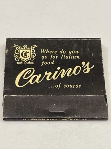 Vintage Matchbook Cover Carino’s a restaurant Miami, Fl gmg unstruck Italian