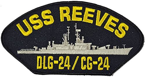 USS REEVES DLG-24/CG-24 SHIP PATCH. Leahy-class cruiser of the United States Navy. ?The Only Cruiser in Town.? Approx. 6" W x 3" H PATCH. High Quality Embroidered. Excellent Color. Very Durable with Iron On Backing. Great Detail and Stitching for a Jacket or Vest. Great Gift Idea for ANYONE, especially those shipmates who served on USS REEVES DLG-24/CG-24, or who are interested in its history. HatnPatch Is THE Veteran Family-Owned and Operated Business. We Generally Ship Orders Within 24 Hours And Usually The SAME DAY!