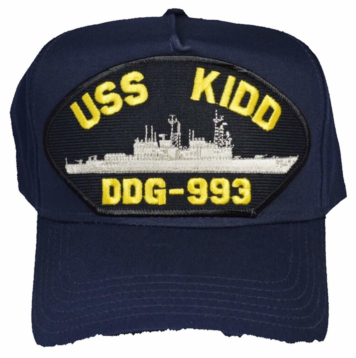 USS KIDD DDG-993 Ship HAT - NAVY BLUE - Veteran Owned Business. Navy Blue Cap High Detail and Impact - USS KIDD DDG-993 Ship HAT. 8 Rows Stitching on Visor and Pro Stitch on Crown 5 panel hat. USS KIDD DDG-993 Ship HAT - Adjustable Size, Navy Blue Golf Style. HatnPatch Is THE Veteran Owned and Operated Family Business - 2 Generations of Retired Marines - We Ship Your Order Within 24 Hours And Usually The SAME DAY!