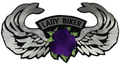LARGE LADY BIKER W/ WINGS AND PURPLE ROSE VEST BACK PATCH - Large - Veteran Owned Business. 10.75" WIDE BY 5.75" TALL PATCH. Quality Embroidered LARGE LADY BIKER W/ WINGS AND PURPLE ROSE VEST BACK PATCH. Color. Durable iron on backing. Great Detail and Stitching for a Jacket or Vest. Great Gift for ANYONE! HatnPatch Is THE Veteran Owned and Operated Family Business - 2 Generations of Retired Marines - We Ship Your Order Within 24 Hours And Usually The SAME DAY!
