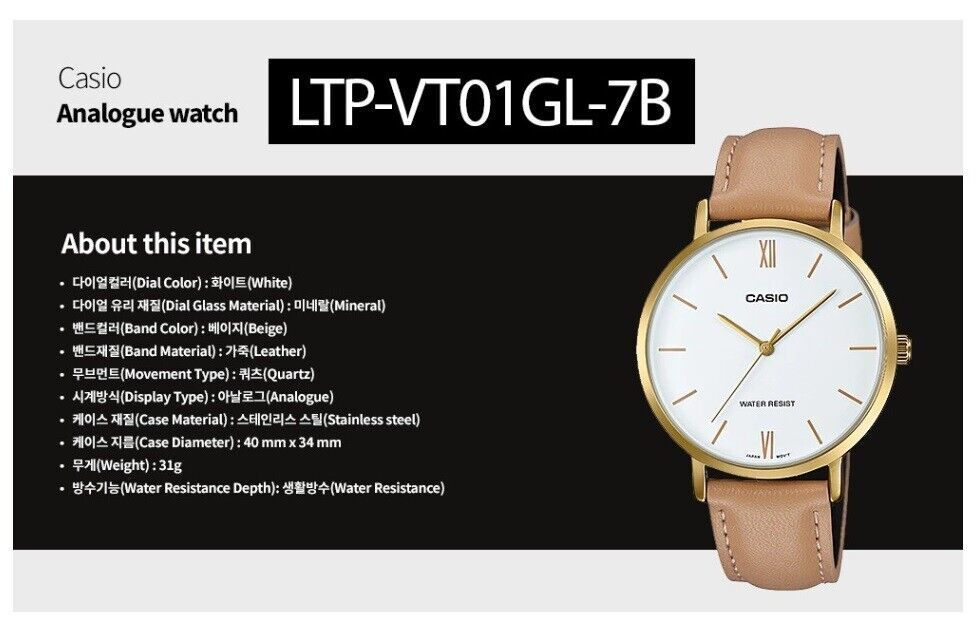 Casio Woman Leather Band Analogue Wrist Watch LTP-VT01GL-7B