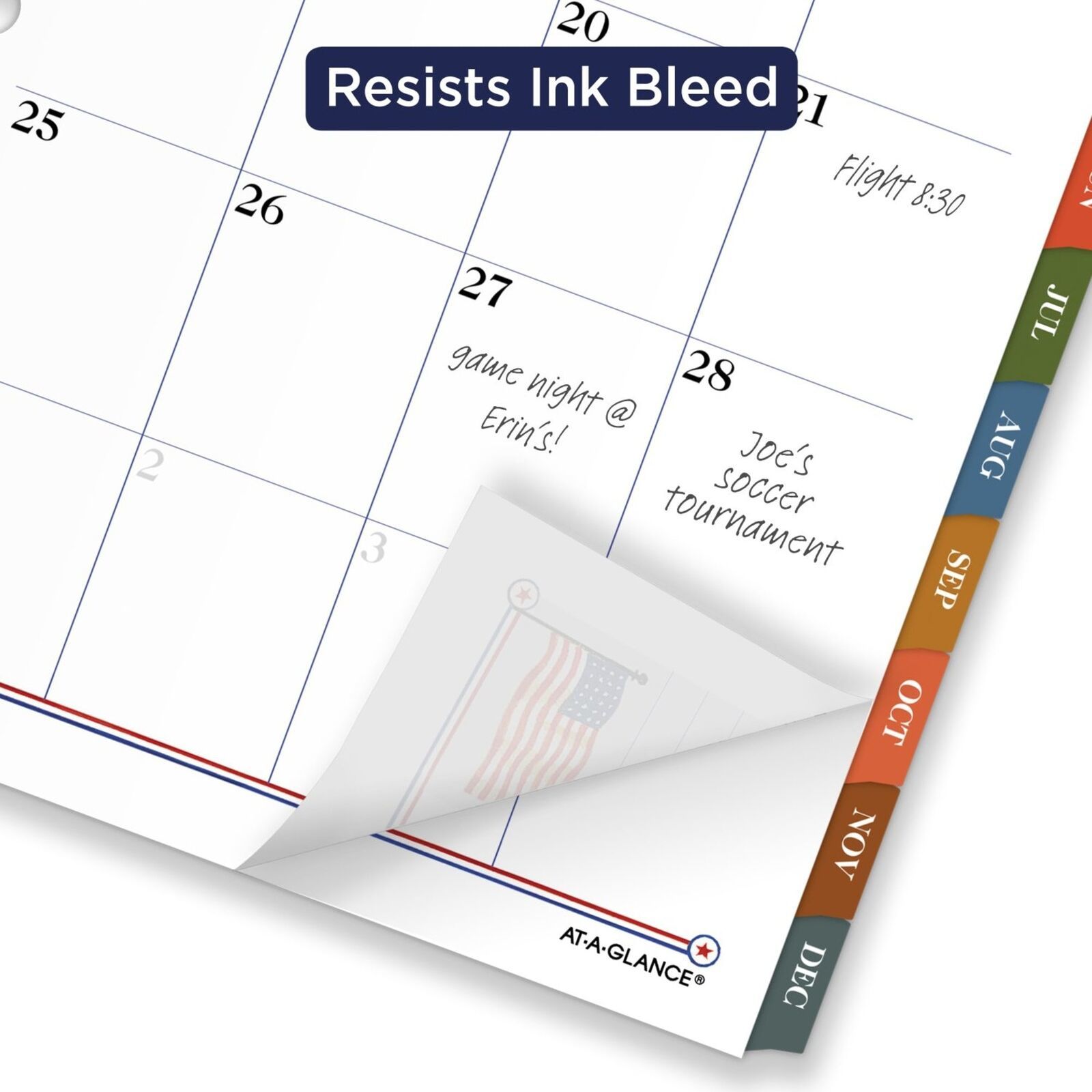 Monthly spreads have unruled daily blocks and tabs for easy navigation