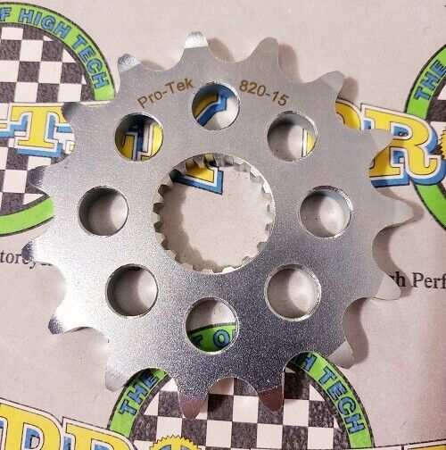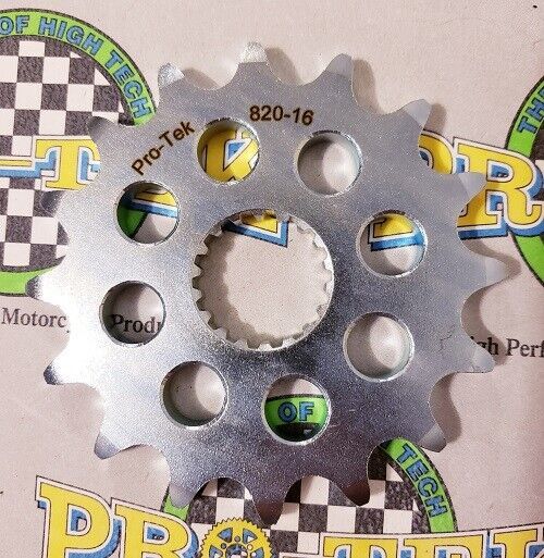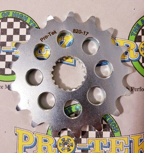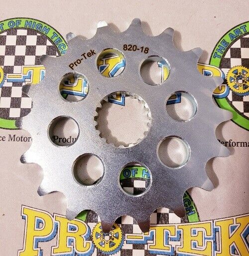 Pro-tek front sprockets are also completely CNC machined to exact tolerances from 4140 nickel-chromoly steel resulting in a quality product. None of the Pro-tek front sprockets are gear hobbed, but are lightened with drilled holes to save on rotating mass. Every lb of rotating mass equates to a 4 lb weight reduction. The sprockets are then case hardened to Rc 58-60 and finished with a zinc plating for added durability and protection from corrosion. Made in the USA, normally retail for $29.95. This is for a 525 Pitch front sprocket 15, 16, 17 or 18 tooth.