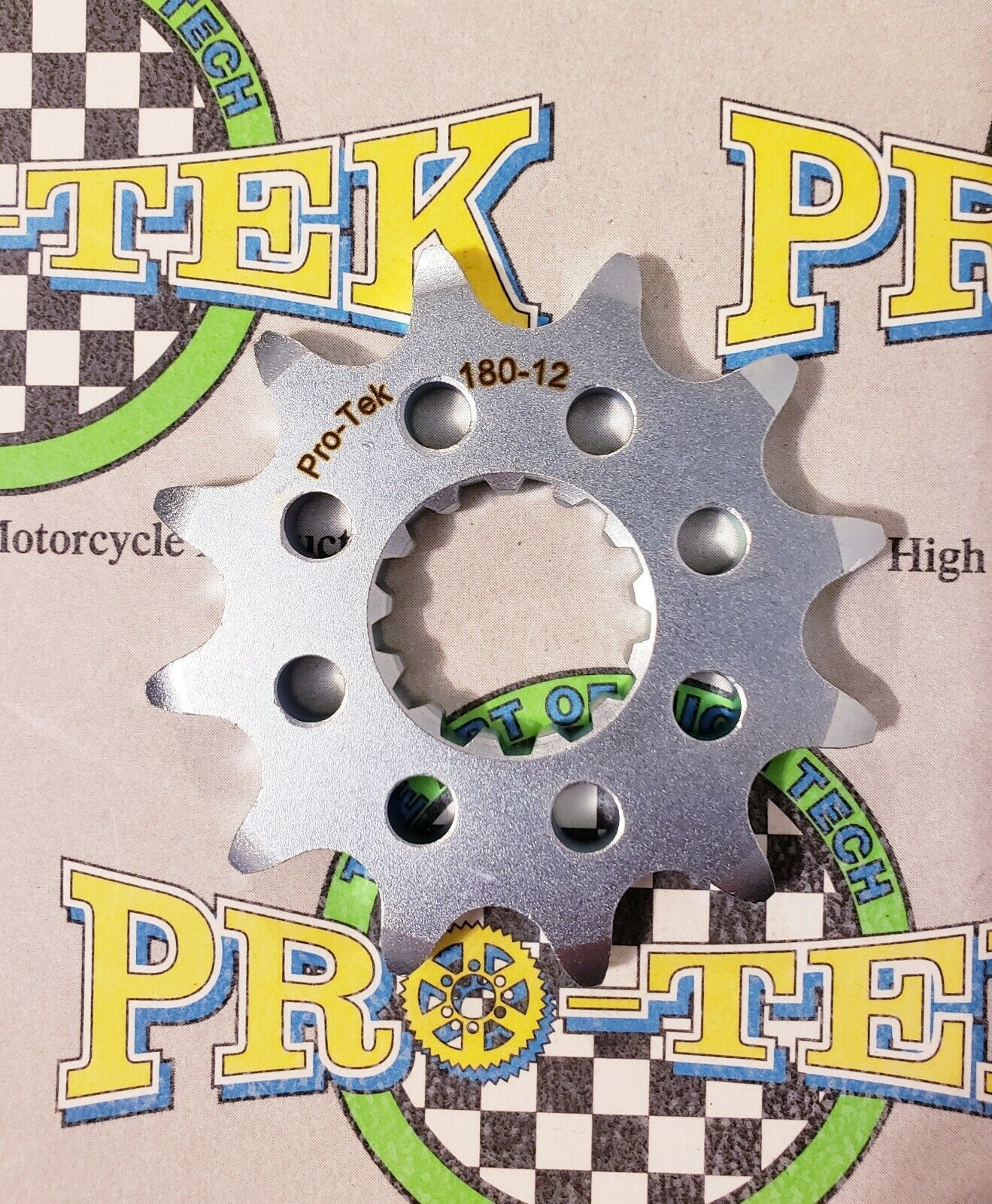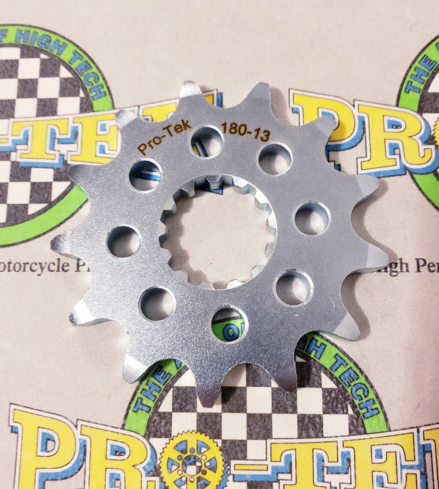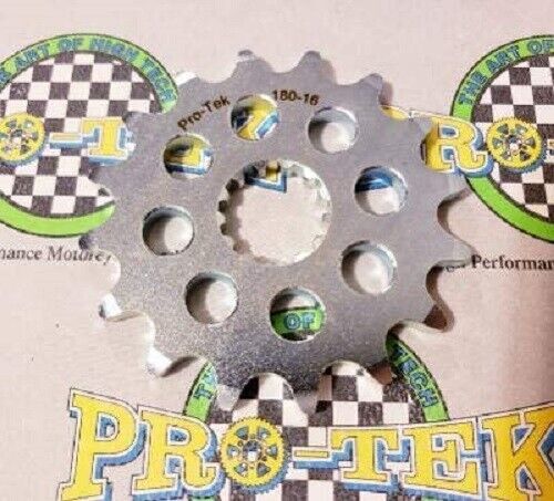 Pro-tek front sprockets are also completely CNC machined to exact tolerances from 4140 nickel-chromoly steel resulting in a quality product. None of the Pro-tek front sprockets are gear hobbed, but are lightened with drilled holes to save on rotating mass. Every lb of rotating mass equates to a 4 lb weight reduction. The sprockets are then case hardened to Rc 58-60 and finished with a zinc plating for added durability and protection from corrosion. Made in the USA, normally retail for $29.95. This is for a 520 Pitch front sprocket 12, 13, 14, 15 or 16 tooth.