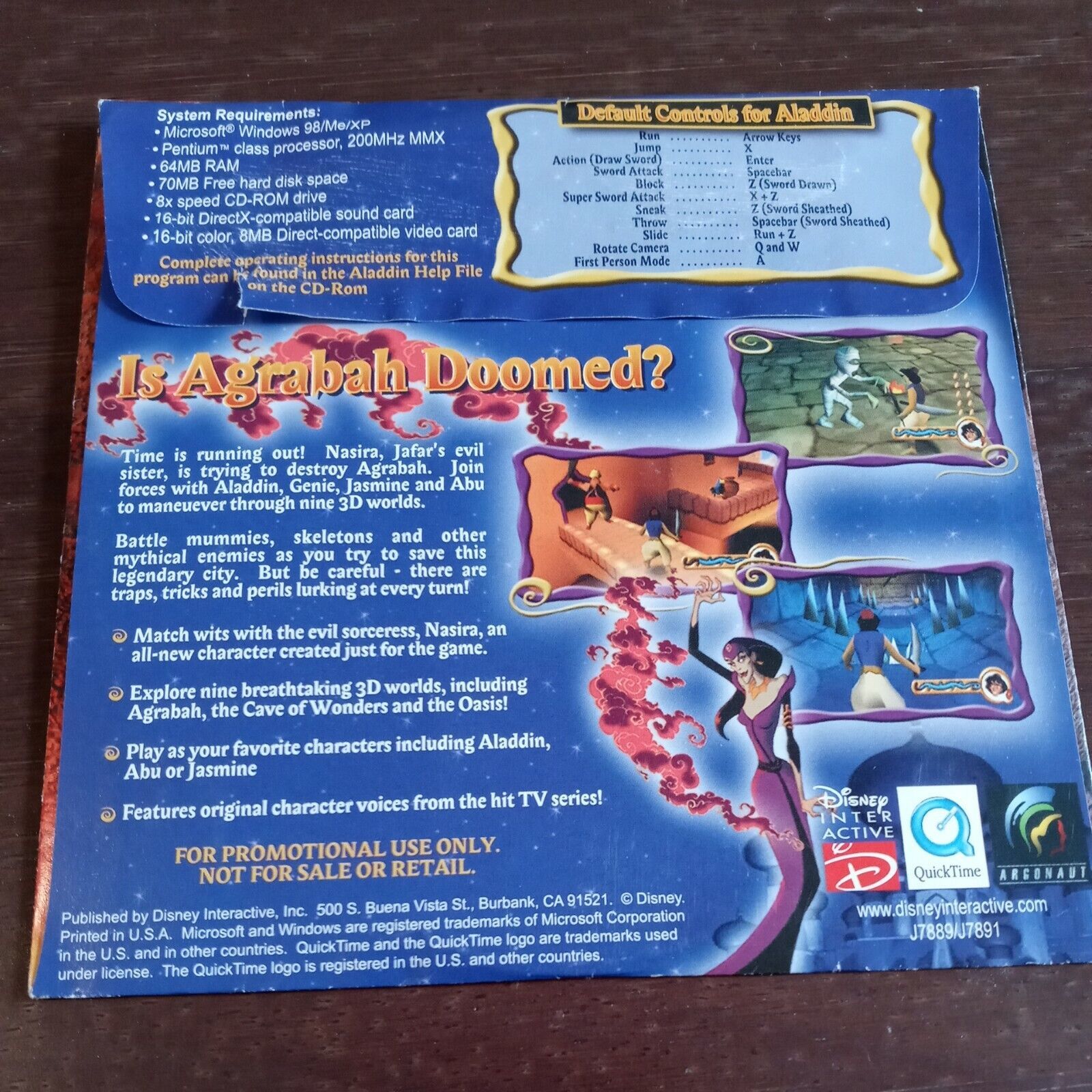Aladdin In Nasira?s Revenge Disney PC Game CD Rom Sealed.Very Good Condition ; Condition is Used-See Pictures Attached For Exact Condition . Shipped with USPS First Class Mail . You Will Receive 1 ea PC CD ROM as shown in pictures attached. SHIPS N 24 HOURS Packed By Our Award Winning Packaging And Shipping Department Long Time E-commerce Seller For Over 20 Years LIMITED AVAILABILITY THANK YOU FOR SUPPORTING OUR FAMILY OWNED USA BUSINESS Collectible Very Good Condition PC CD ROM (Has Wear See Pictures Attached For Exact Description) - CD's Are Tested And Cleaned With Our Professional CD Cleaning Equipment Before Shipped - Ships Immediately - Great Product at a Unbelievable Price - Your Chance To Own This Collectible PC CD ROM Before Its Gone. Inventory Box #6006