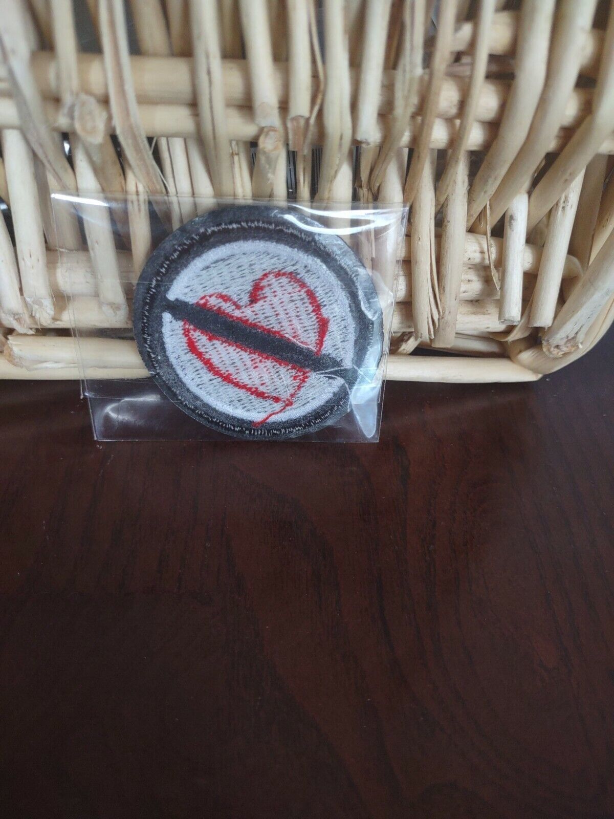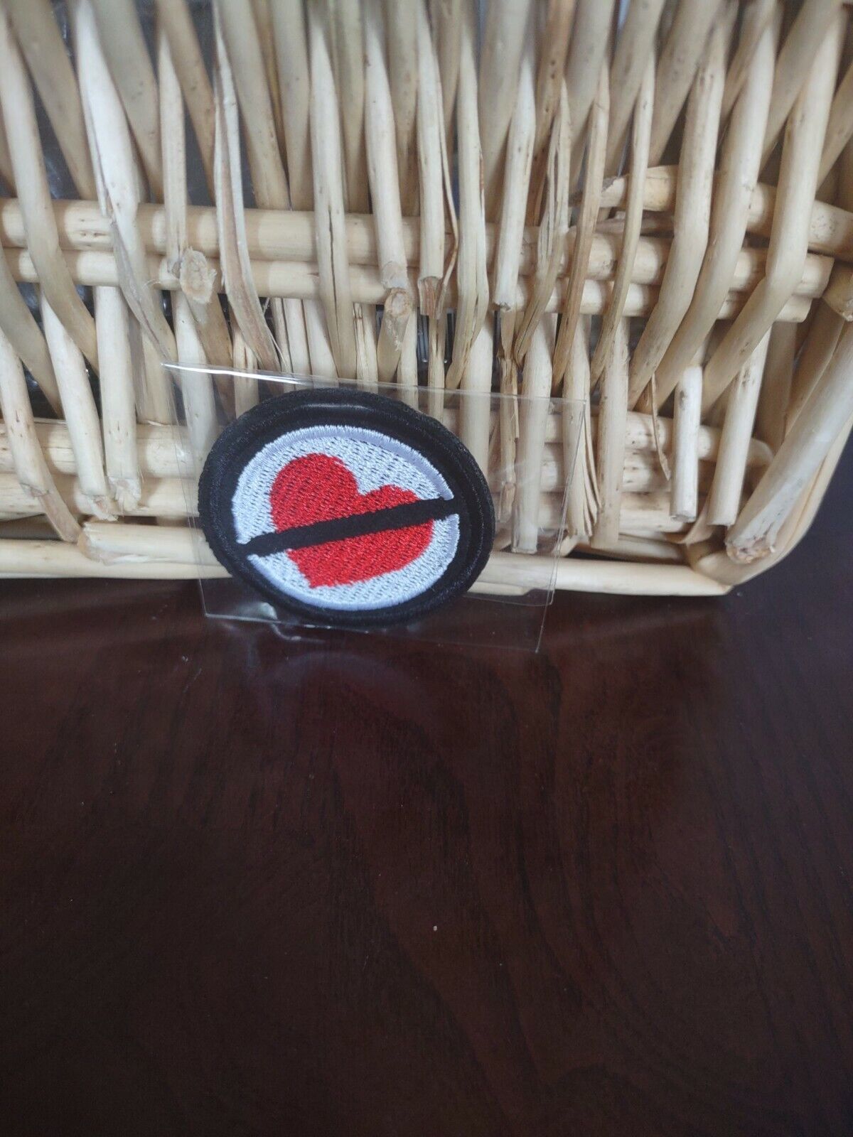 Heart Crossed Out Patch. Small Inventory box number 5571