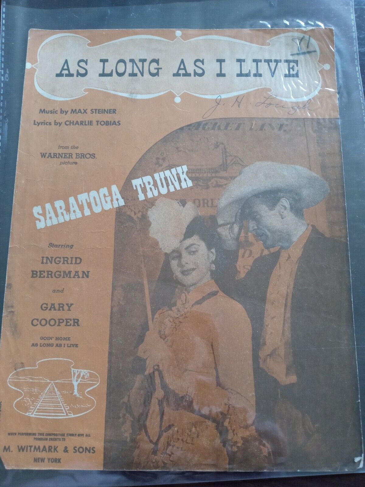 As Long As I Live from Saratoga Trunk Ingrid Bergman Gary Cooper WW2 Sheet Music