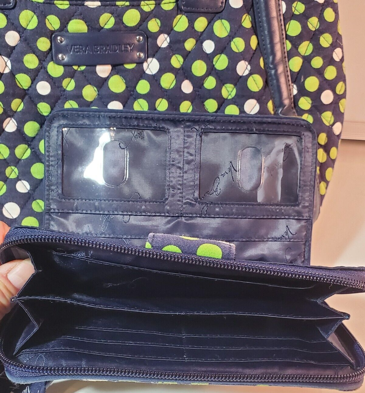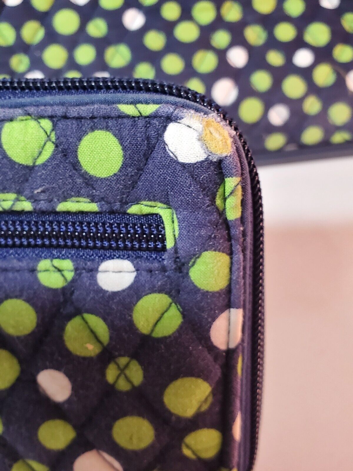 VERA BRADLEY Trimmed Trapeze Handbag Wllet Lucky Dots Blue Green Polka Dot no Shoulder Strap BGS