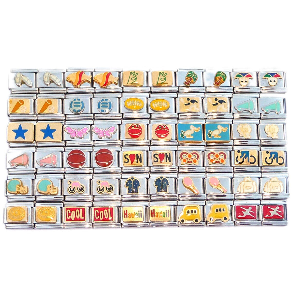 60 Italian Charms - Sports, Words, Fun Stainless Steel Bracelet Jewelry MIX107