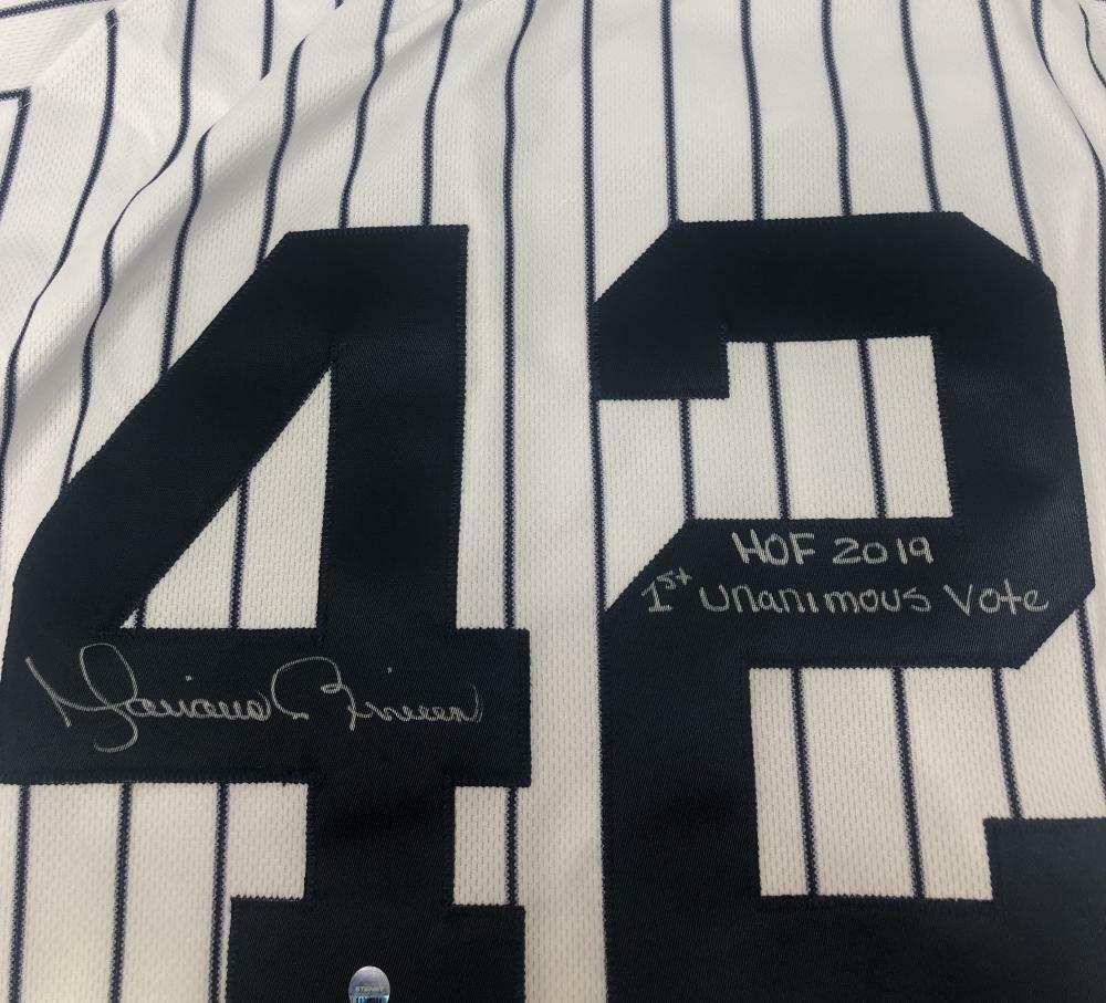 This authentic jersey has been personally hand-signed and inscribed "HOF 2019" "1st Unanimous Vote" by Mariano Rivera. It comes with an individually numbered, tamper-evident hologram from Steiner Sports. To ensure authenticity, the hologram can be reviewed online. This process helps to ensure that the product purchased is authentic and eliminates any possibility of duplication or fraud.