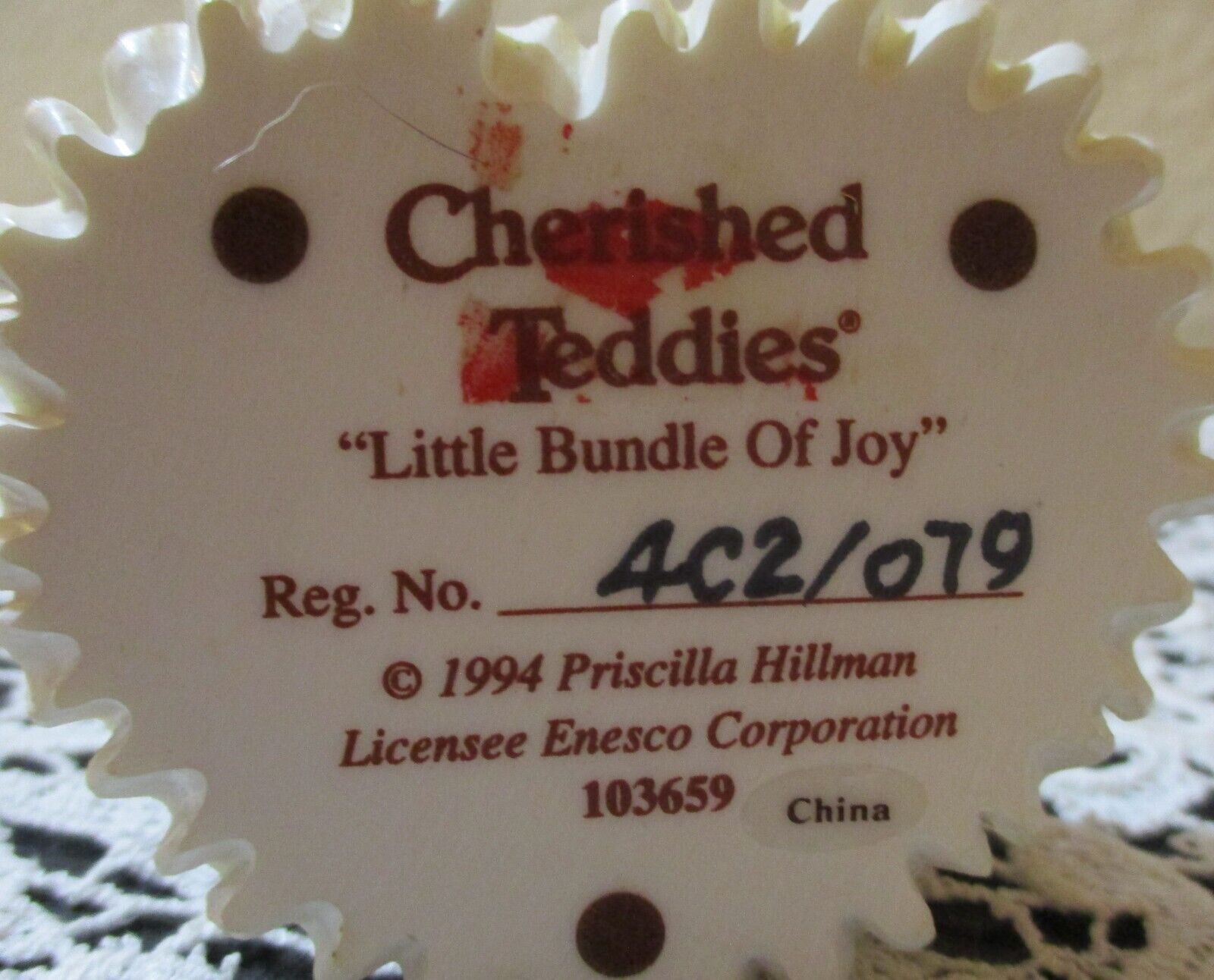 Enesco Cherished Teddies Little Bundle Of Joy Bear Blue 1994 P. Hillman. Very good condition. Does not have the original box. Same or next day ship.
