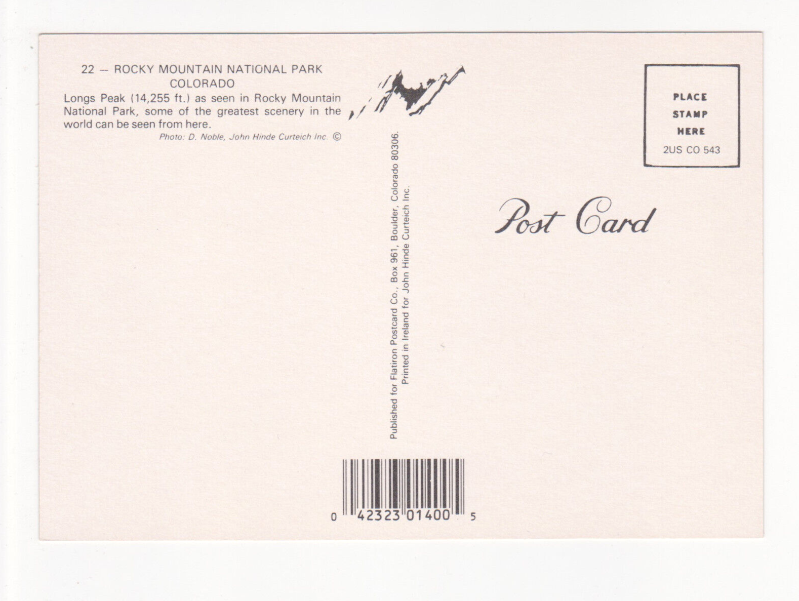 Vtg Postcard-Rocky Mountain National Park-Long's Peak-Landscape-6x4 Chrome-CO1