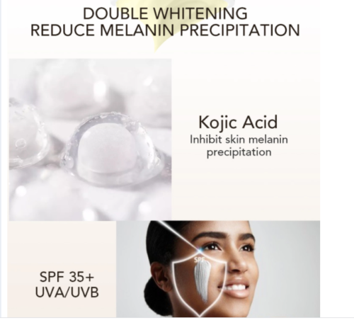 Enriched with whitening kojic acid and anti-oxidant ingredients provide high-index UV protection to the skin during the day. Protecting the skin from UVB, inhibiting the growth of melanin at the best time. Making skin radiant and white as the new sprout. Continuous will result in a more even toned, clear and bright skin tone. The appearance of the skin will be improved, supple, clear with a natural radiance.