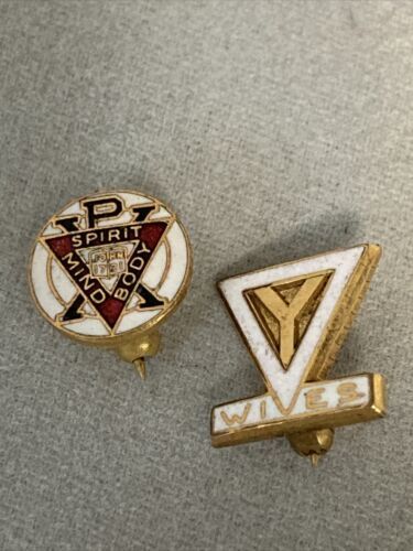 Small very old pins for membership or board. Could not find much information on the Y ?Wives? pin.