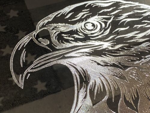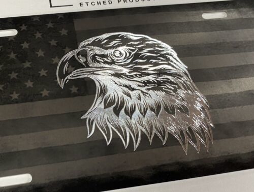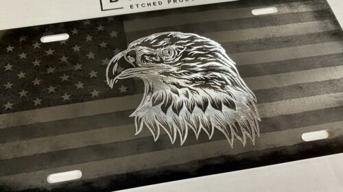 Combo Laser & Diamond Etched US American Flag Eagle Car Tag Front License Plate