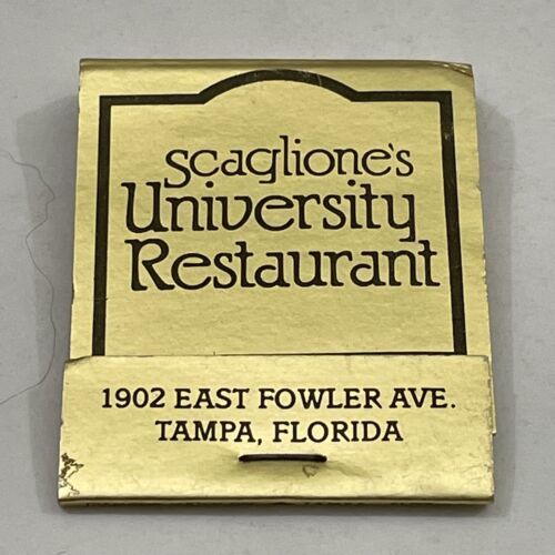 Vintage Matchbook Cover Scagliones Univ. Restaurant Tampa, Fl gmg No Matches