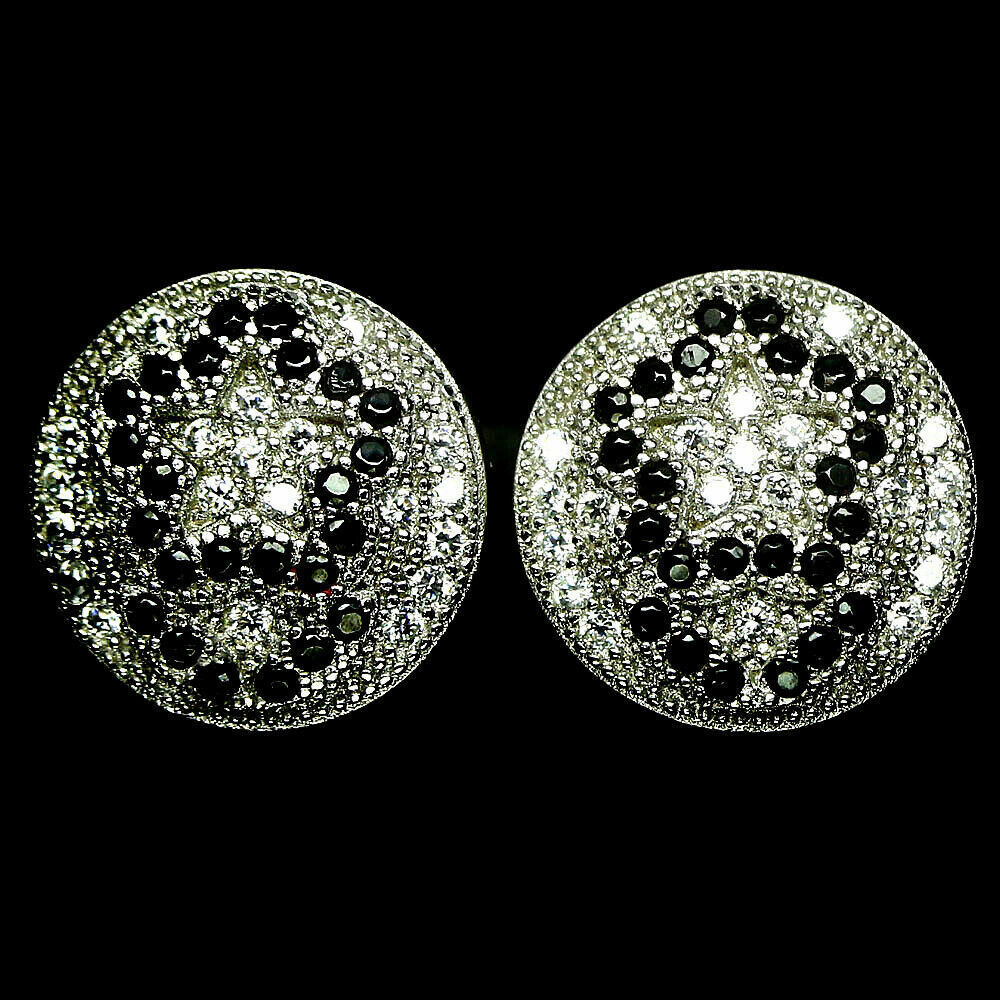 2.55Ct Round Black & White CZ Cluster Earrings 14K White Gold Plated 925 Silver