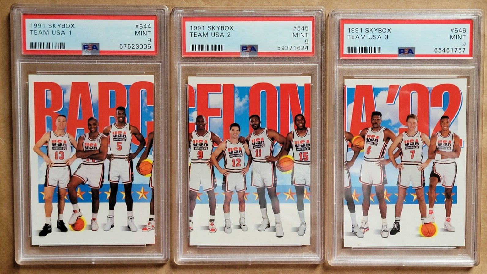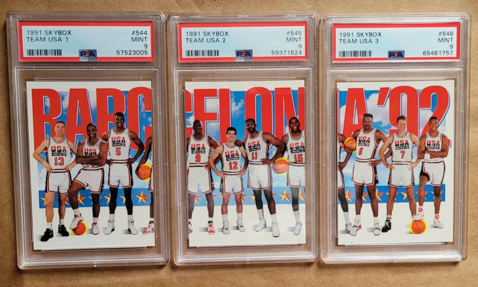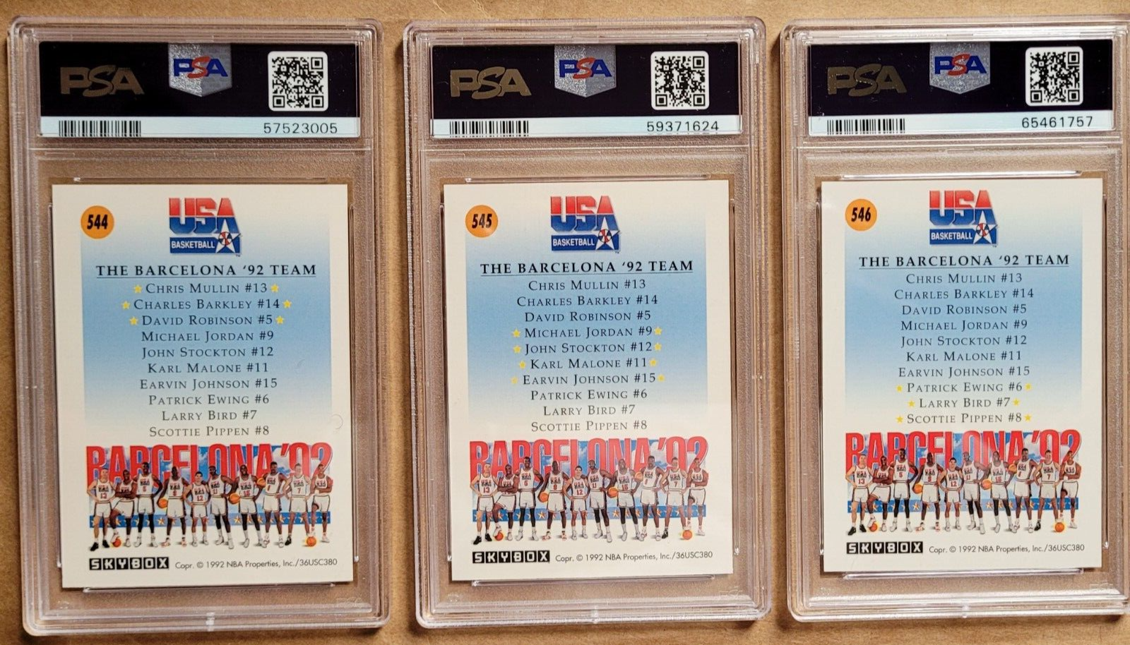 1991 Skybox Team USA 3 Card Set #544,545,546 JORDAN Olympics Dream Team PSA 9