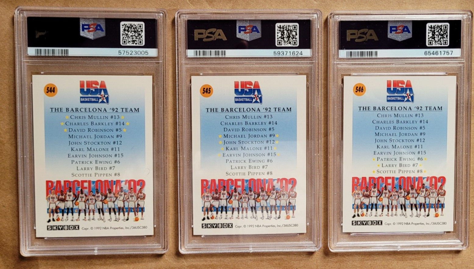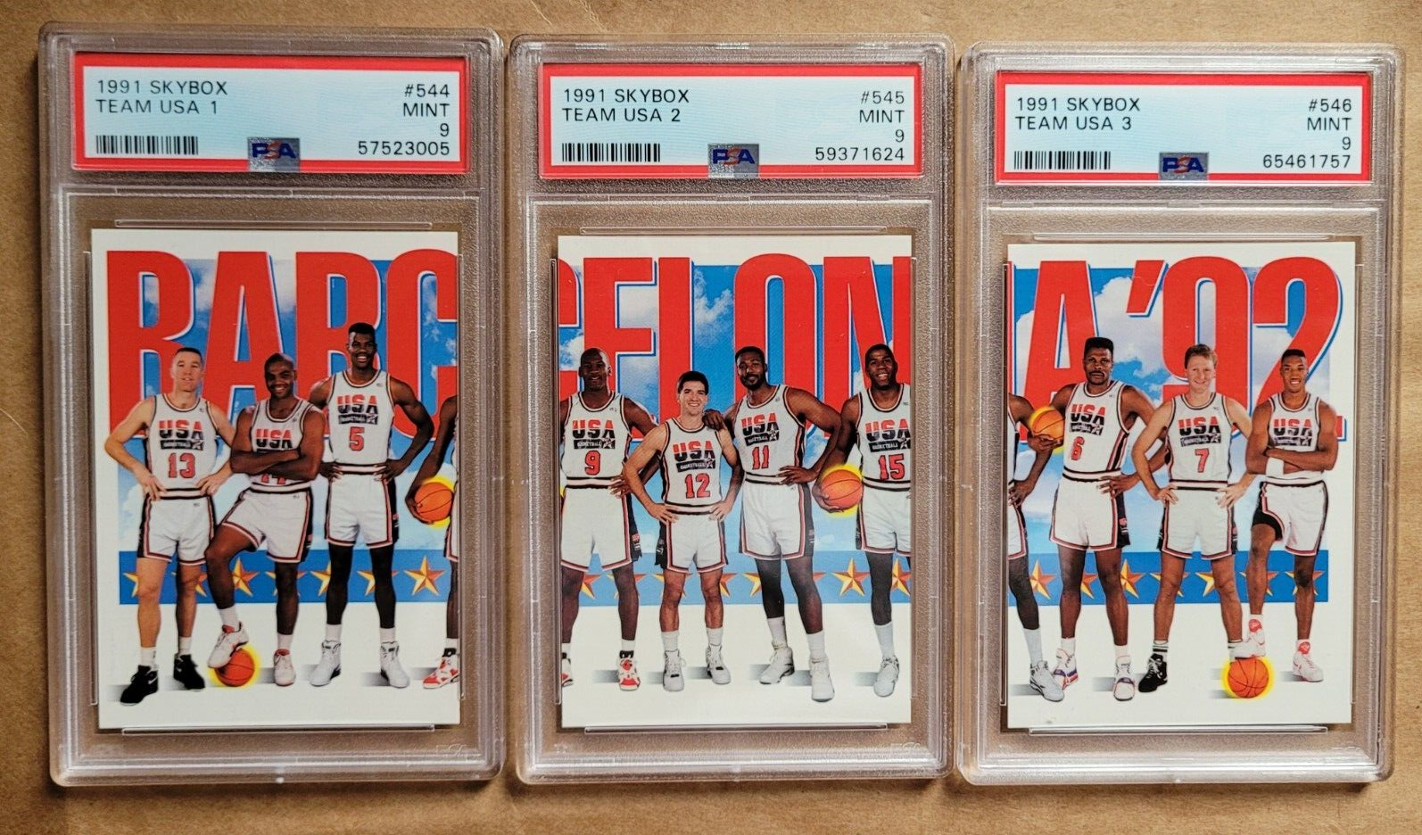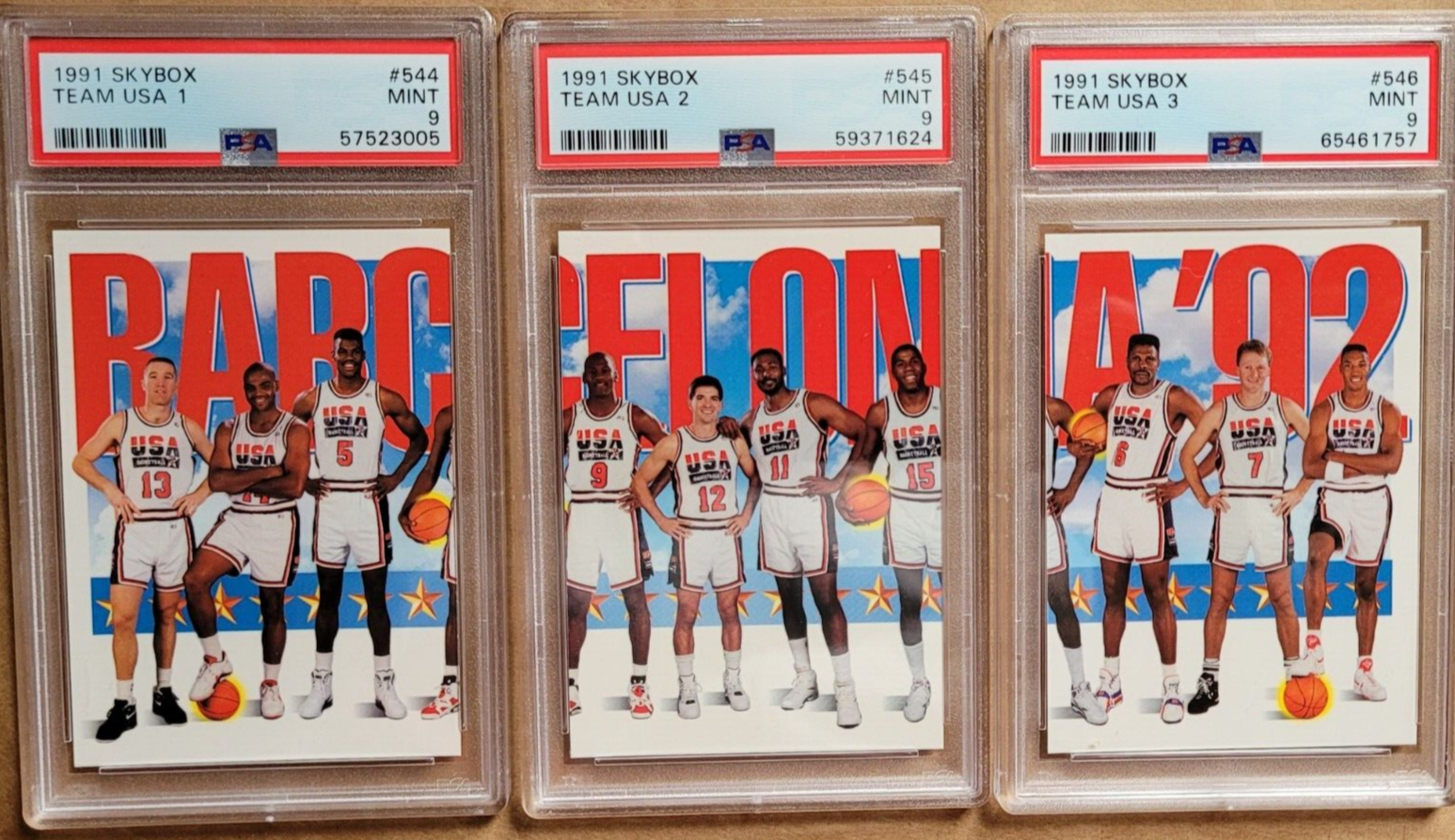1991 Skybox Team USA 3 Card Set #544,545,546 JORDAN Olympics Dream Team PSA 9