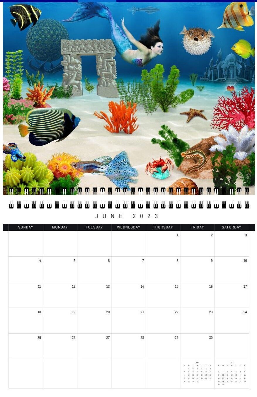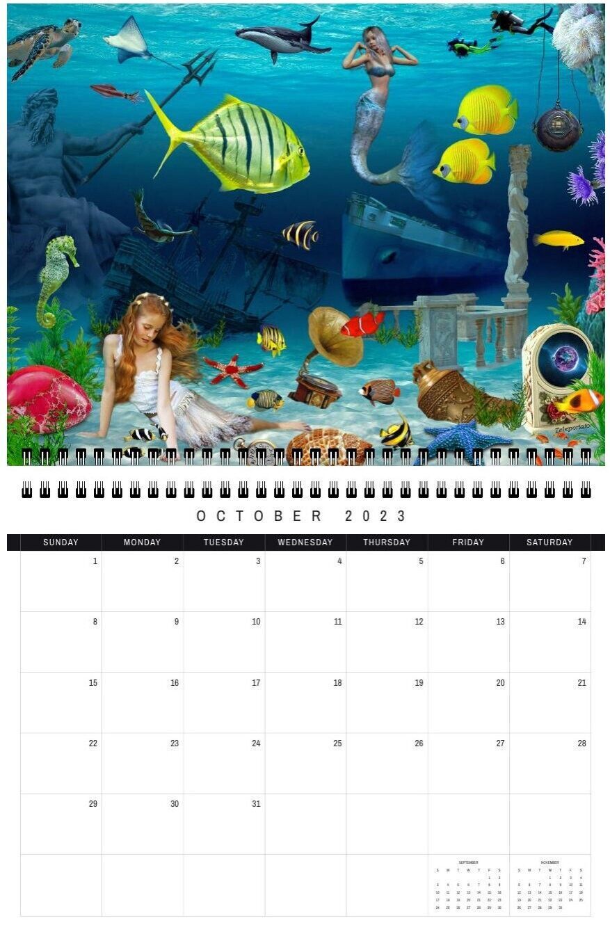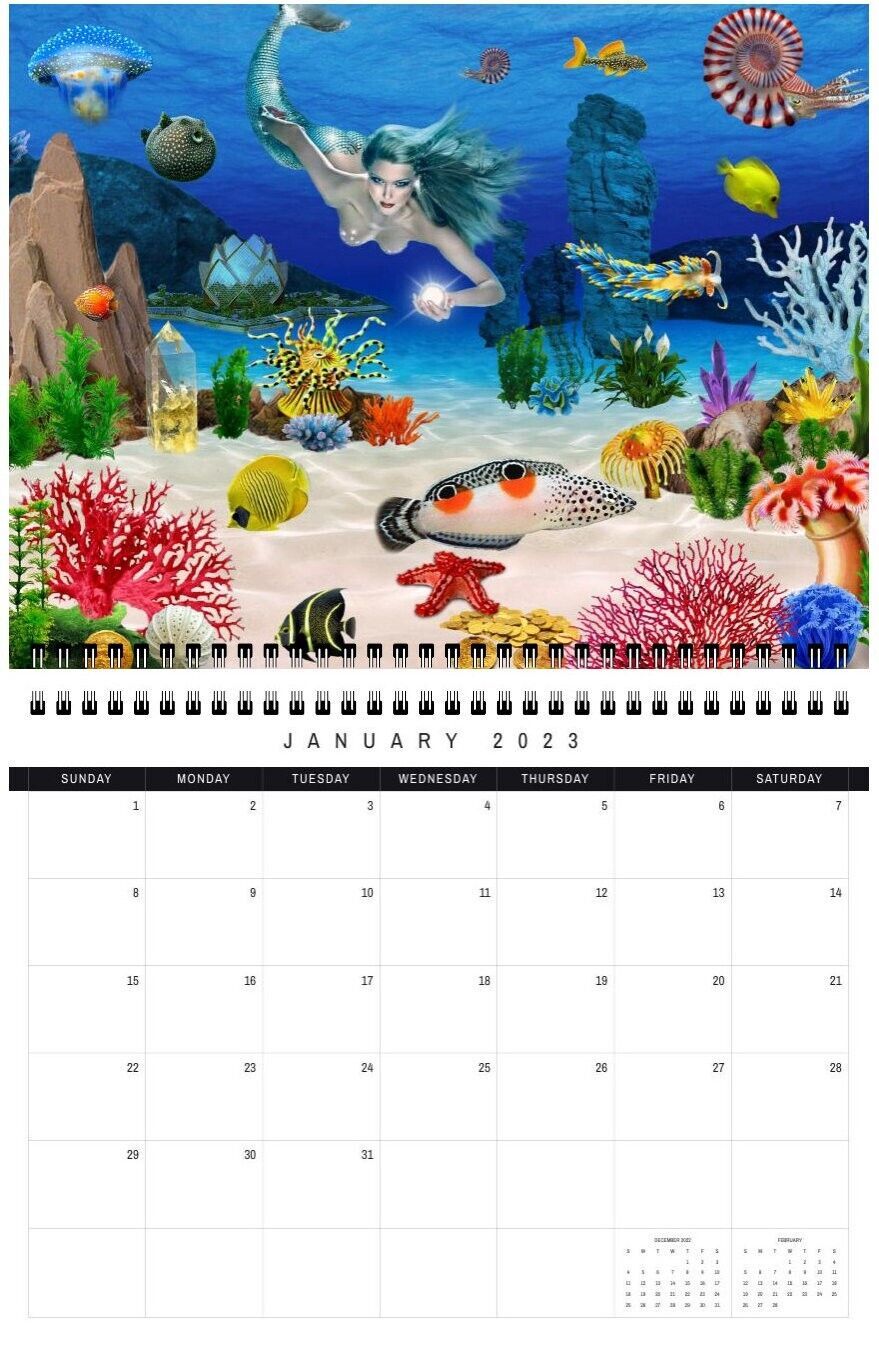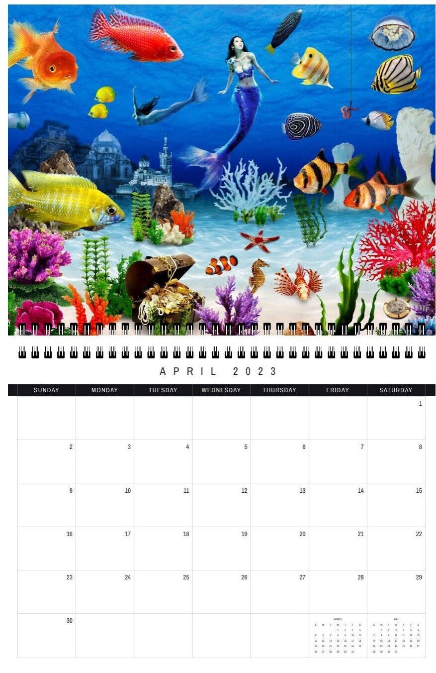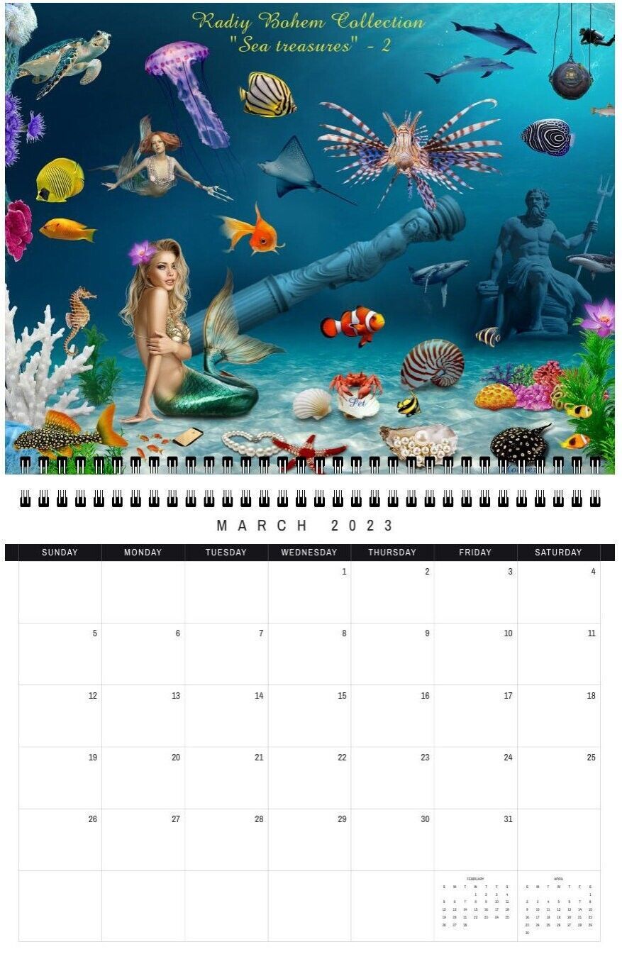This Mermaid Wall calendar is specially designed for girls and adults. Each month has its own unique interesting image that cheers you up and makes you laugh. These images form a collection of paintings by Radiy Bohem. They are amazing and beautiful.