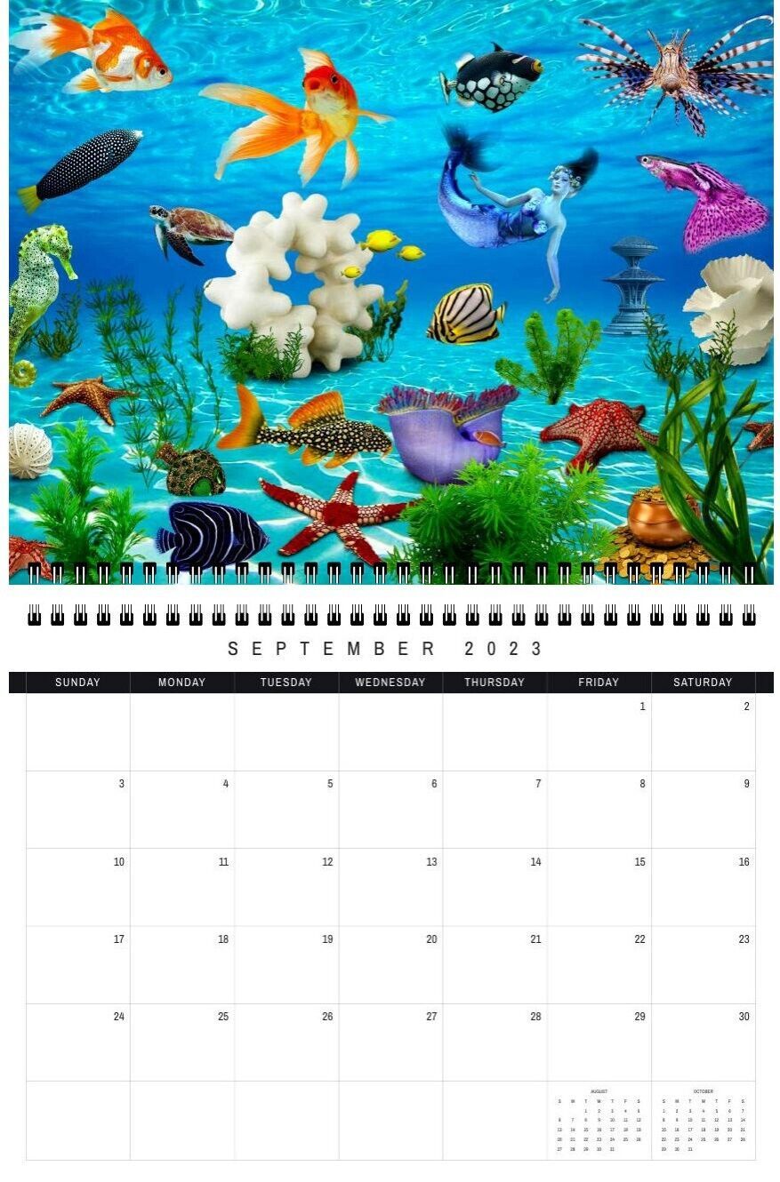 Spiral-bound Mermaid style wall calendar 2023 for girls childrens add style and function to your work space. Recommended for educational institutions and schoolchildren.