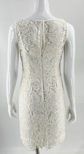 Adrianna Papell Sheath Lace Dress Size 6 White Lined Sleeveless Womens