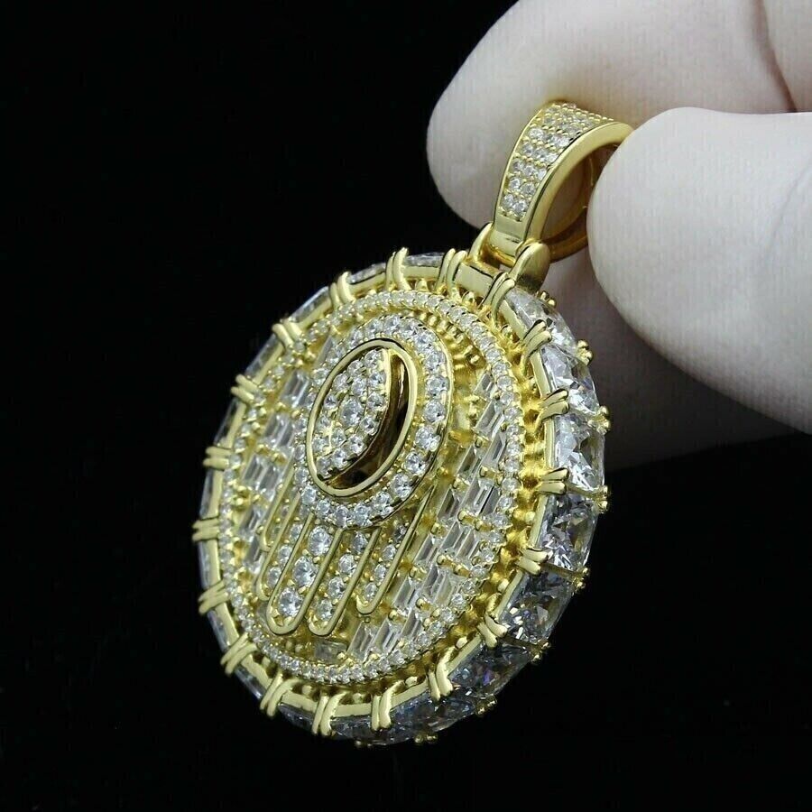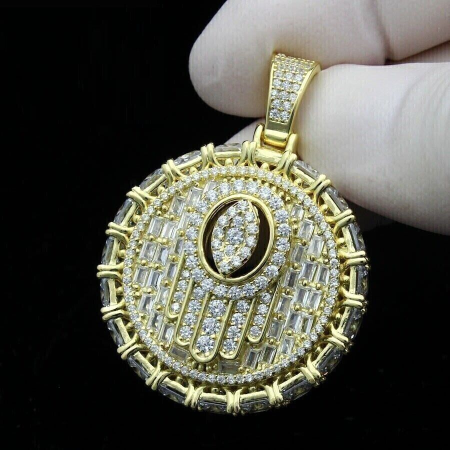 2.10Ct Round Cut CZ Moissanite Evil Eye Hamsa Pendant 14K Yellow Gold Plated