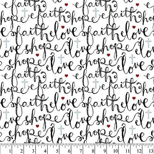 Fat Quarter - Faith Hope Love Bible Verse 18" x 21" Precut Cotton Fabric M203.15