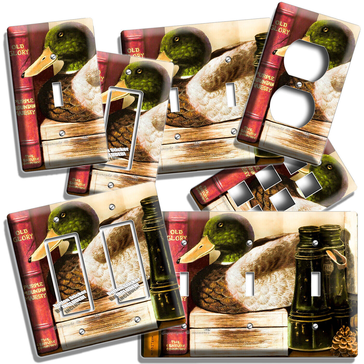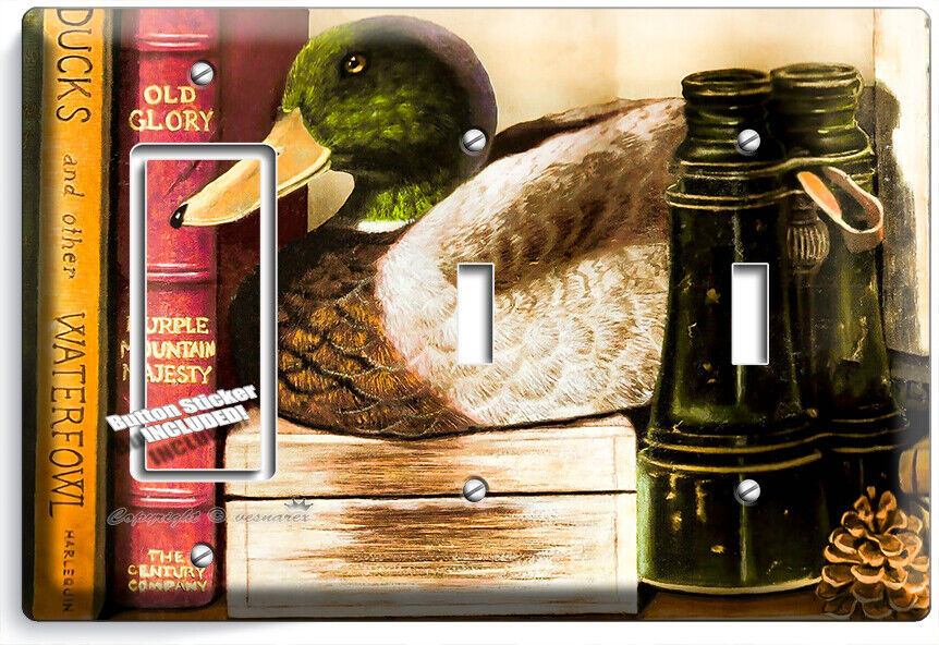 RUSTIC DECOY DUCK COUNTRY BOOKSHELF LIGHT SWITCH OUTLET HUNTING CABIN WALL PLATE