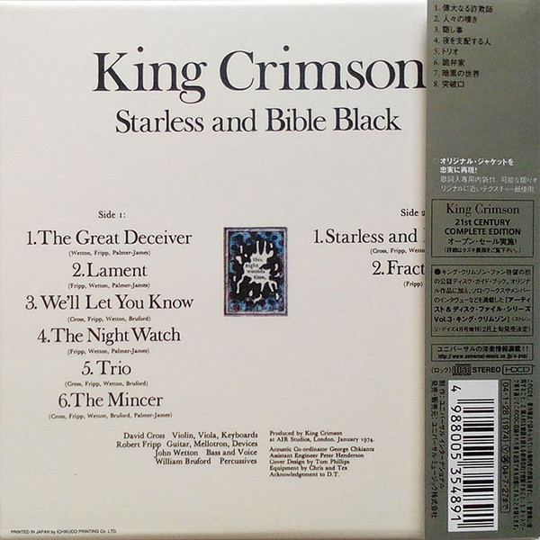 King Crimson – Starless And Bible Black [Audio CD, MINI LP sleeve]
