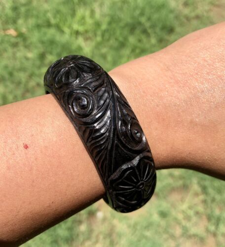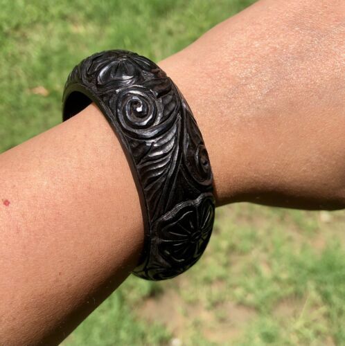 Ebony Wood Carved Bangle Bracelet, Statement and 50 similar items