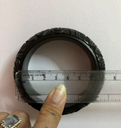 Ebony Wood Carved Bangle Bracelet, Statement Jewelry, Handmade 65 mm Dia