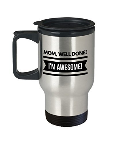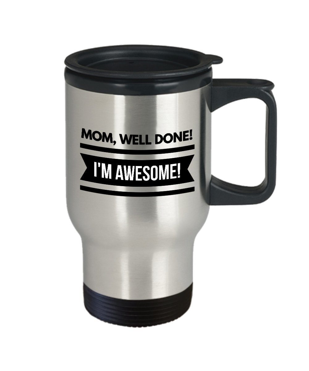 Funny Mom Travel Mug 14oz - WELL DONE I'M AWESOME - Mothers Day Gifts, Mum Birth