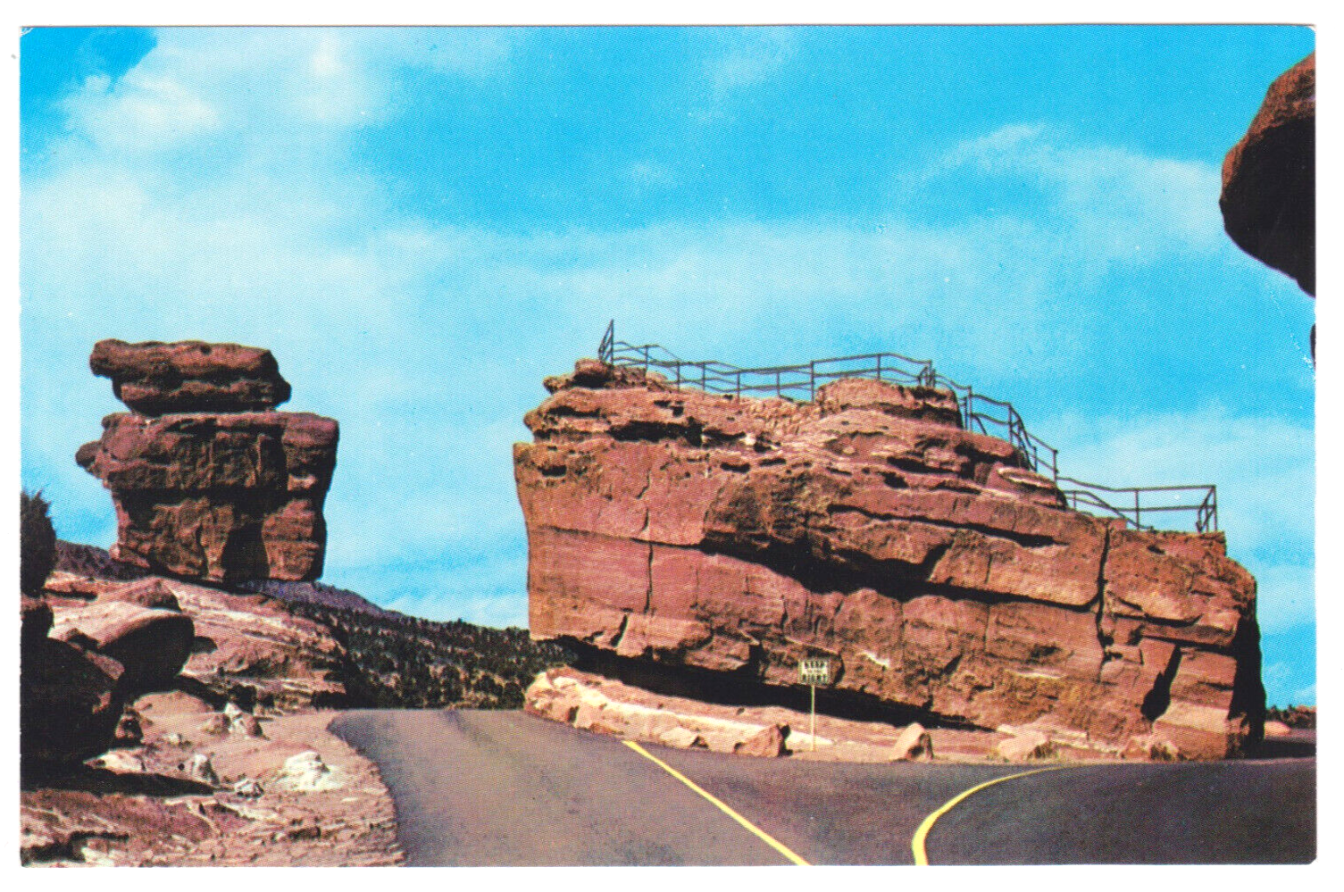 Vtg Postcard-Balanced &Steamboat Rocks-Garden of the Gods-Pikes Peak-Chrome-CO3