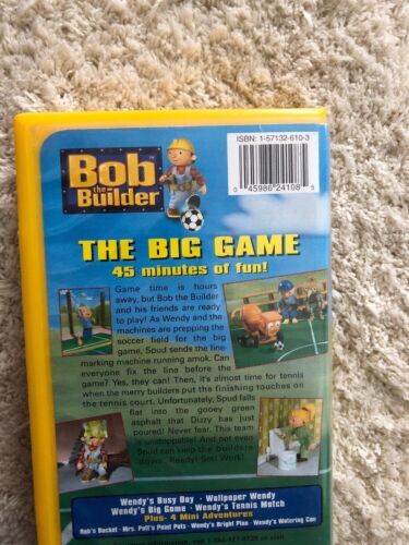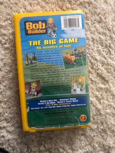 Bob the Builder-The Big Game(VHS,2001) AUTHENTIC MOVIE INDUSTRY COPY INCLUDES VHS TAPE AND CASE TESTED CATALOG NUMBER :24108 UPC: 045986241085 COLLECTIBLE - VINTAGE - VERY RARE COLLECTIBLE LIKE NEW VHS TAPE - VHS TAPES ARE INSPECTED AND SANITIZED USING OUR PROFESSIONAL VHS TAPE CLEANING EQUIPMENT - GREAT PRODUCT AT A UNBELIEVABLE PRICE - YOUR CHANCE TO OWN THIS COLLECTIBLE VHS TAPE BEFORE ITS GONE