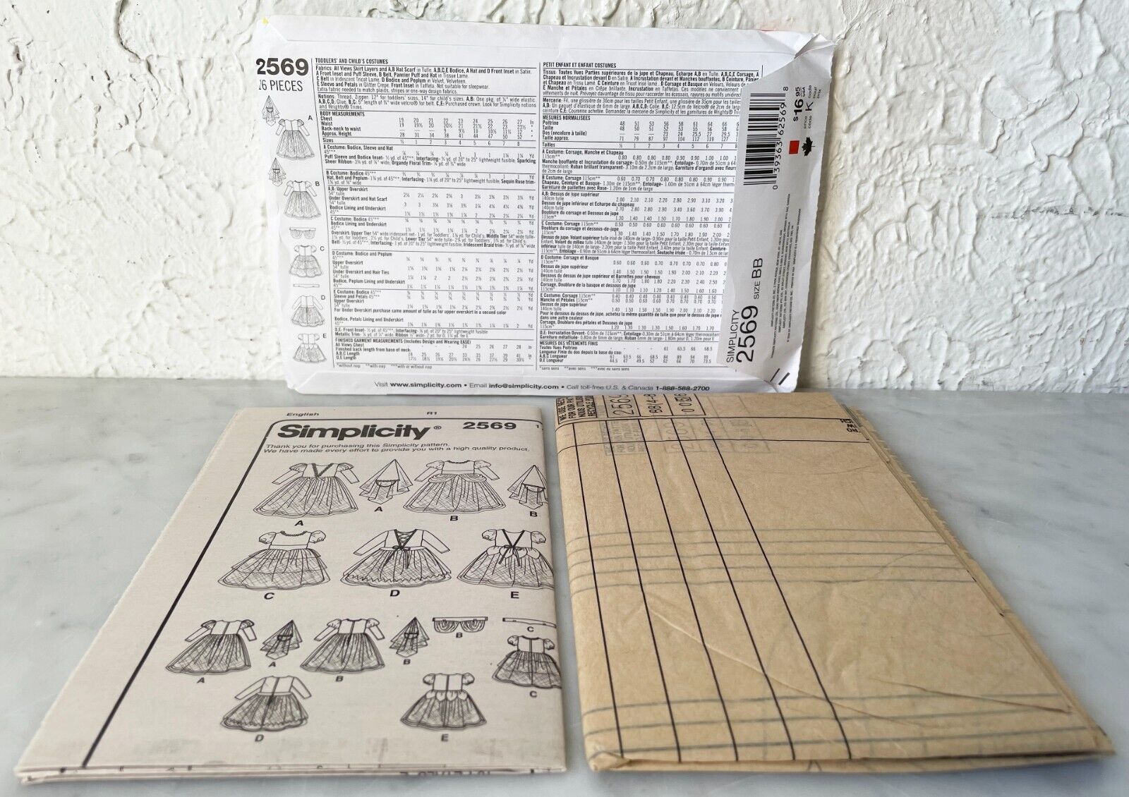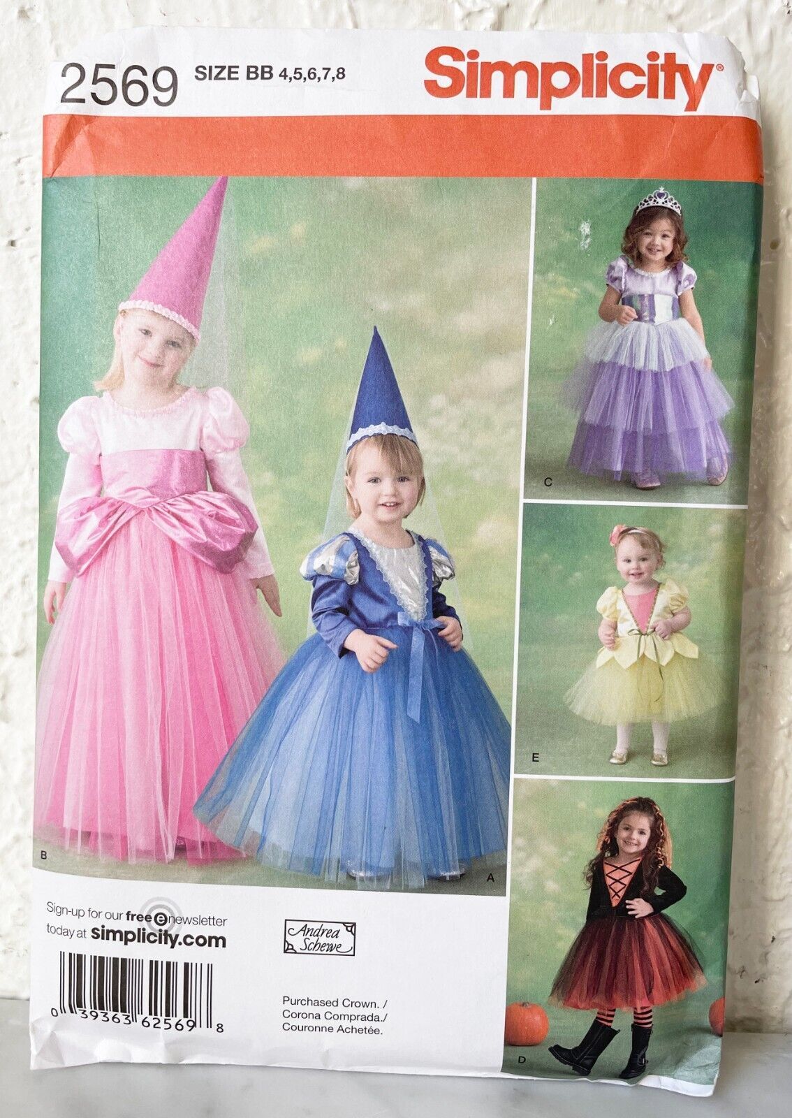 Simplicity Costumes sewing pattern #2569 is uncut. Halloween costumes for toddlers and girls: Princess, Witch and Fairy. Sizes 4-8. Please see the pictures for the details.
