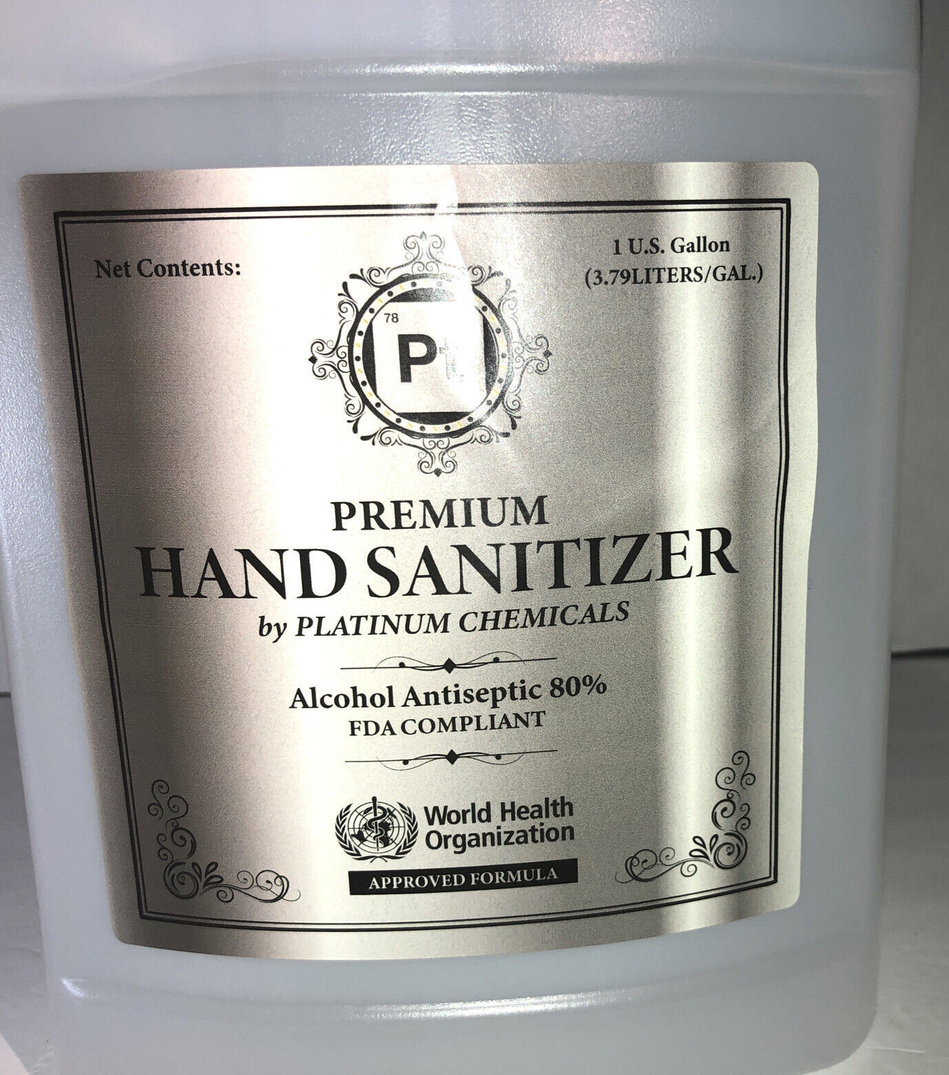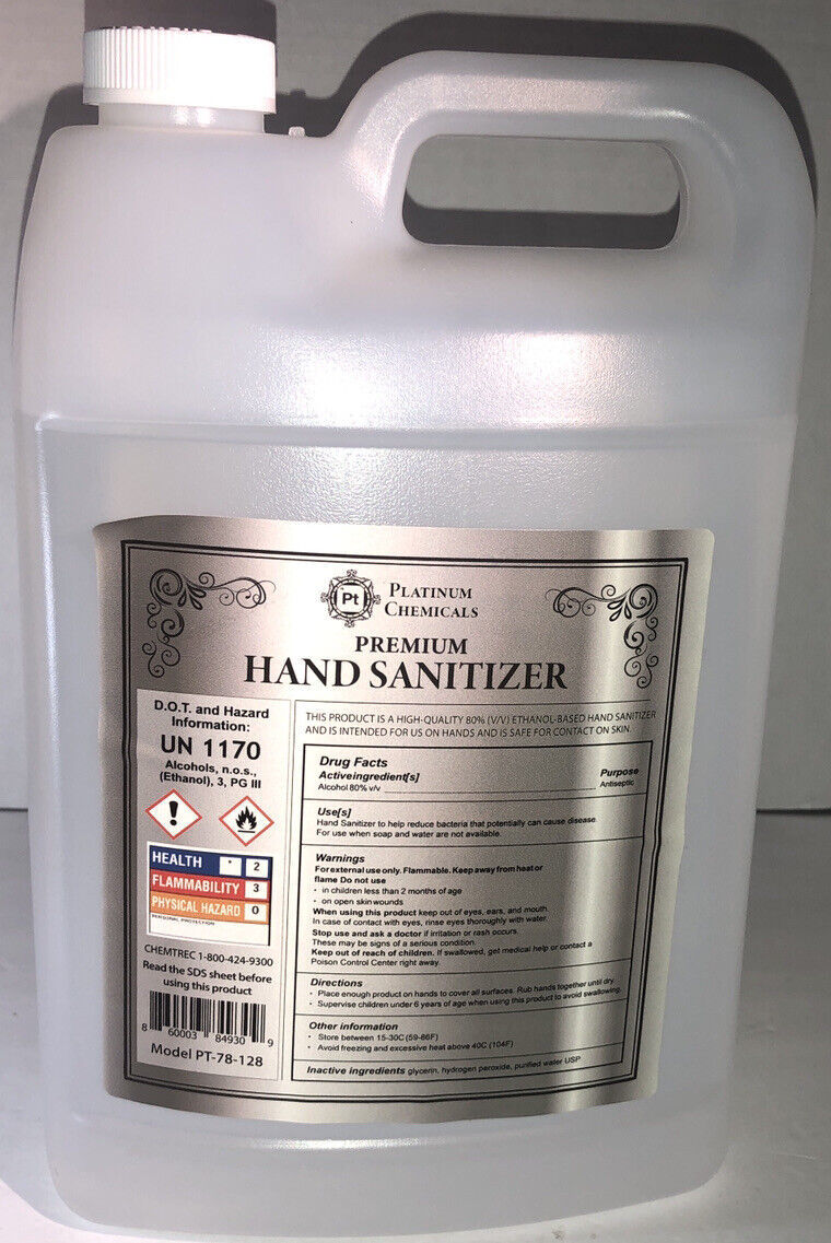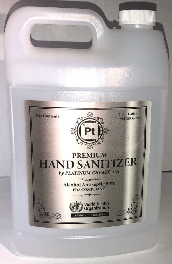 You Will Receive 1 ea Gallon #PT-78-128 Premium Antiseptic Hand Sanitizer (80% Alcohol) !!!. By Platinum Chemicals-Condition is "New".