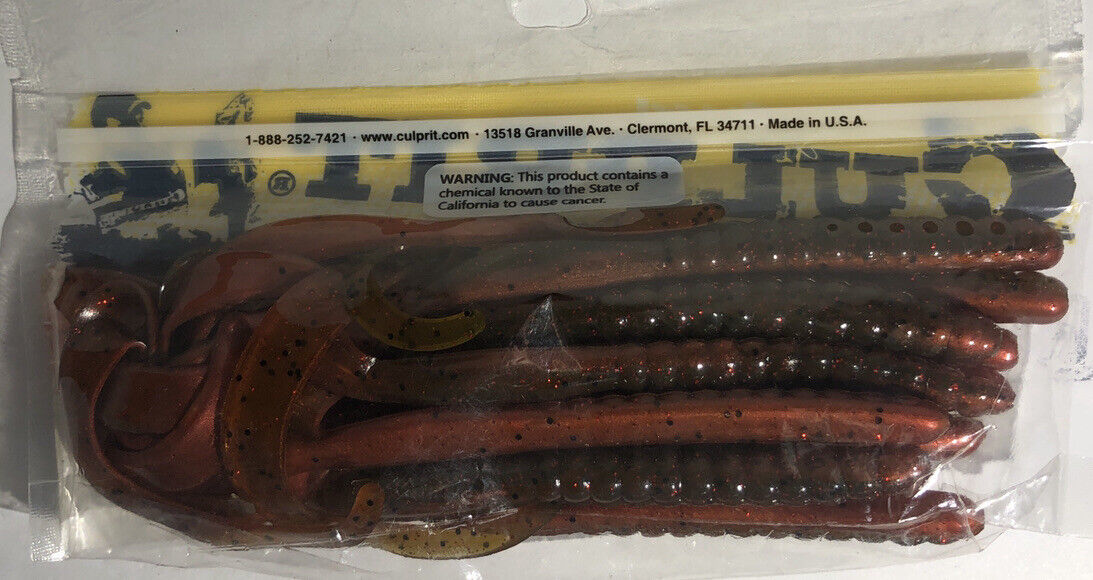 Rod-N-Bobs RX5102PK Rev X Sty Bob. 10", Watermelon Copper Red Flake. Model # C1010-170. Brand name Culprit. Plastic Worms. Item weighs 0.2 pounds.