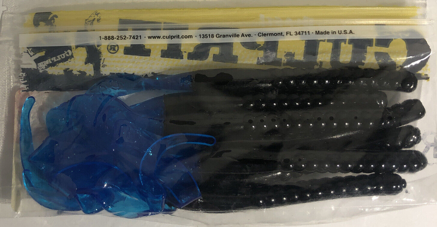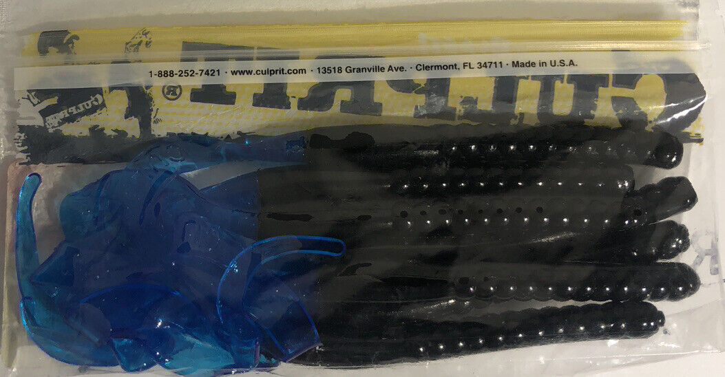 You Will Receive 1 ea Pk 7ct 10? Culprit Bait #C107-26 Black/Blue Tail Culprit Worm-NEW-SHIPS N 24 HRS