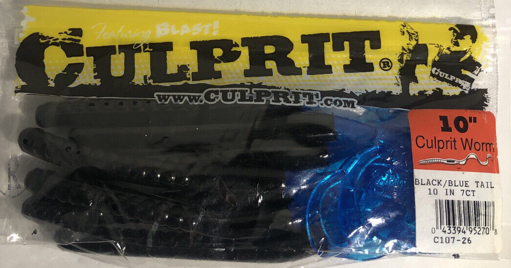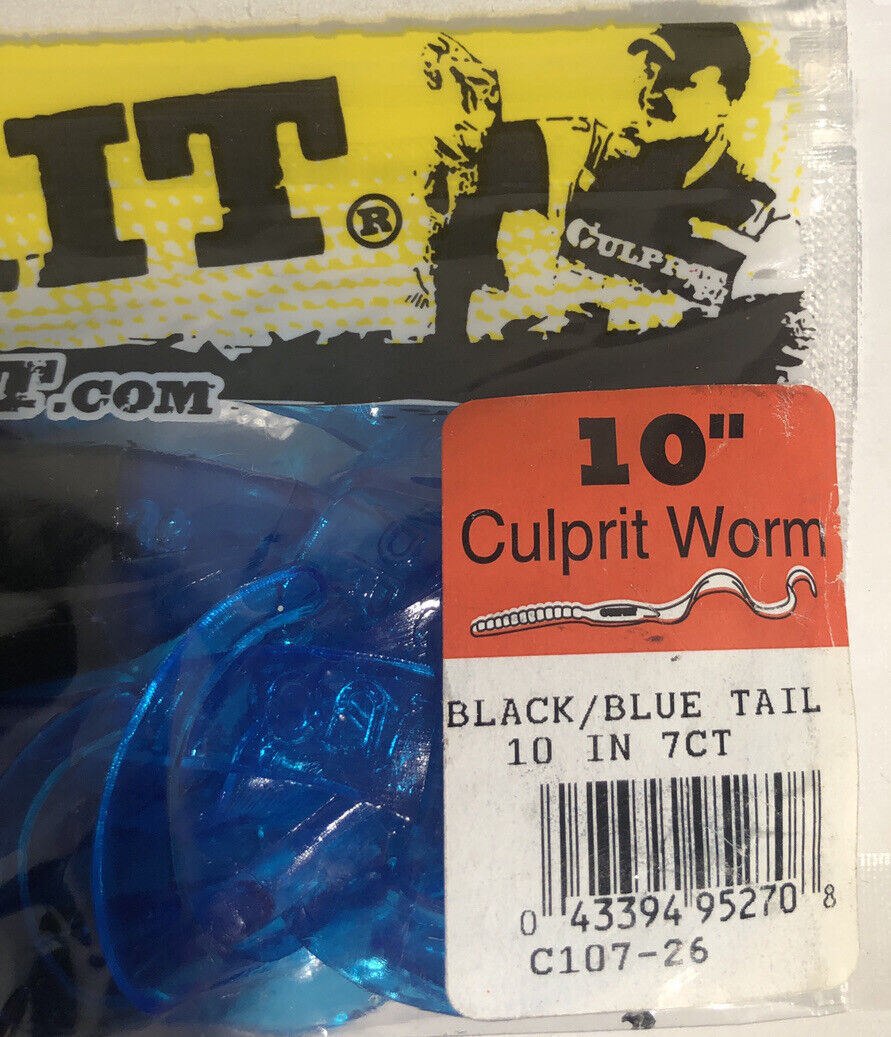 Culprit 1ea 7ct 10” C107-26 Black/Blue Tail Culprit Worm-NEW-SHIPS N 24 HRS