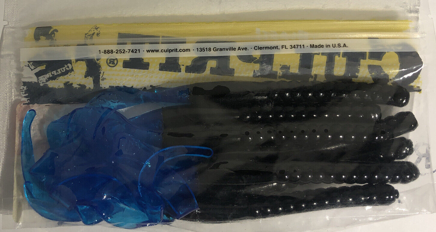 Culprit Bait 1ea 7ct 10? C107-26 Black/Blue Tail Culprit Worm-NEW-SHIPS N 24 HRS