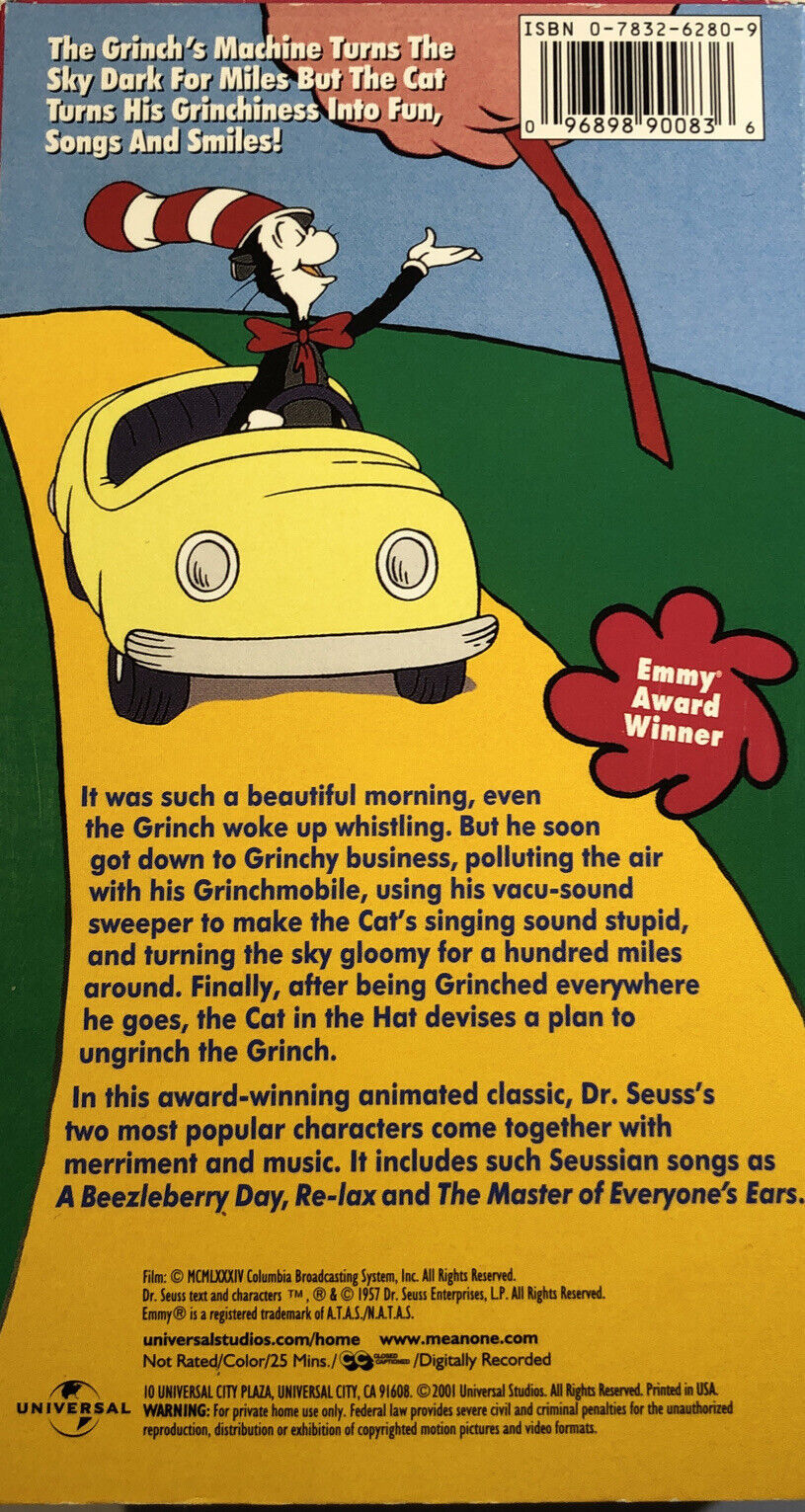 RARE Dr. Seuss-The Grinch Grinches the Cat in the Hat(VHS 2000)TESTED-SHIP N 24H.
