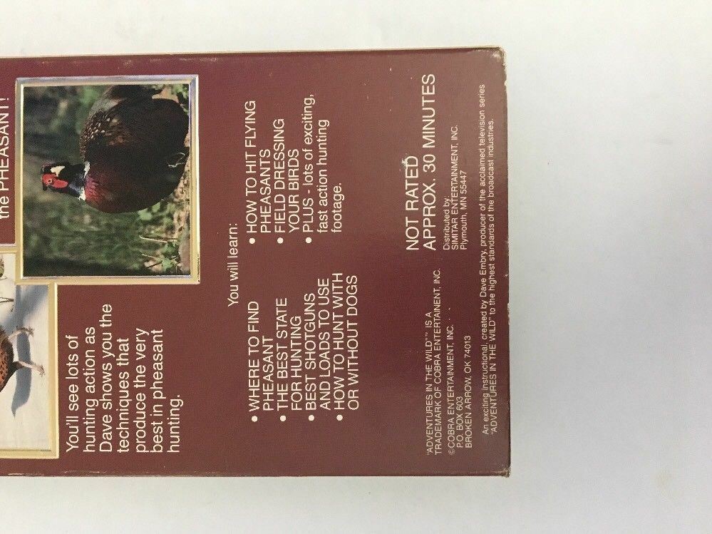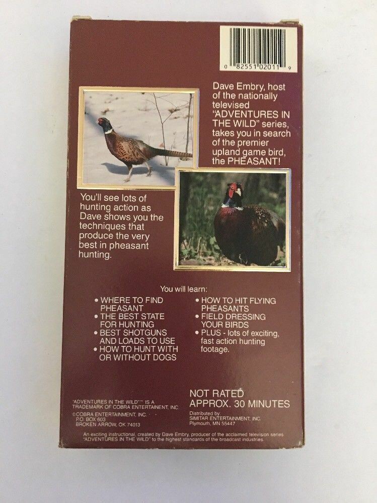Caza de faisan W Dave Embry (VHS 1996) Autentica copia de la industria del cine Incluir Cinta y estuche de VHS Probado Número de catalogo: 2011 Coleccionable - Vintage - Muy raro