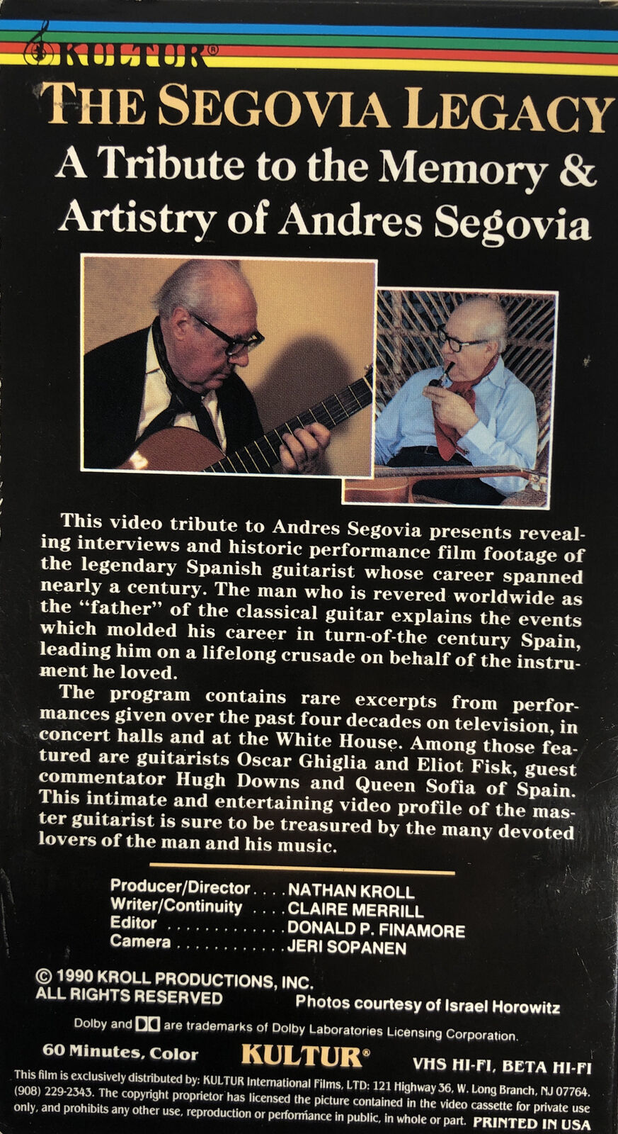 The Andres Segovia Legacy(VHS 1990)Classical Guitarist-TESTED-RARE-SHIP 24 HOURS