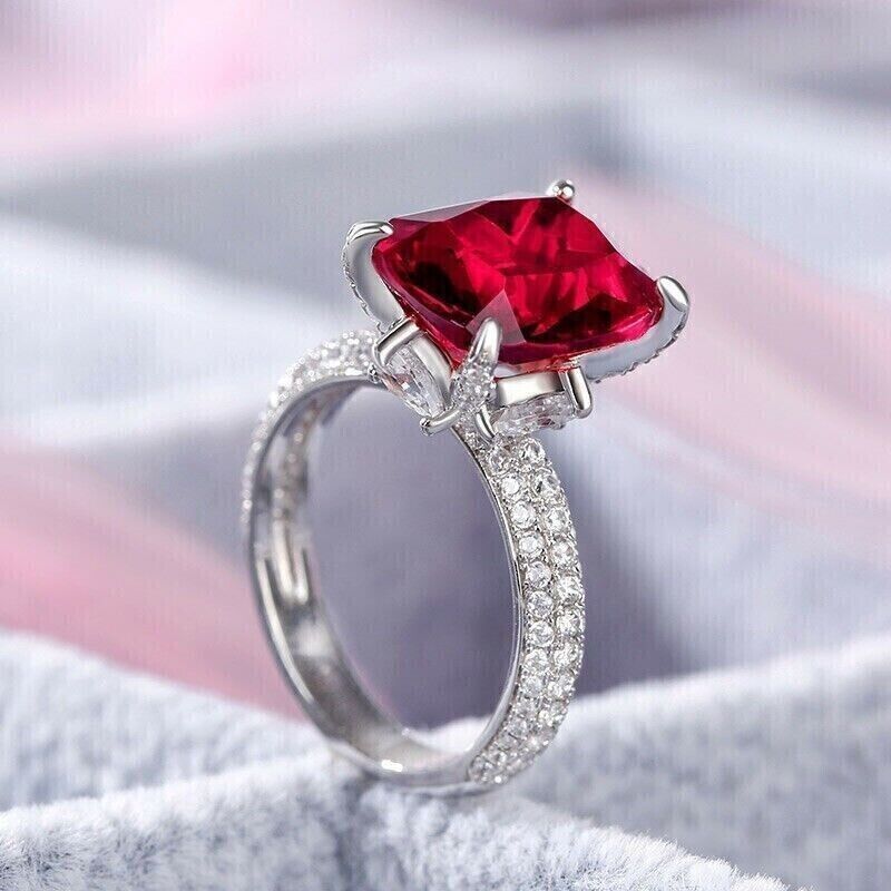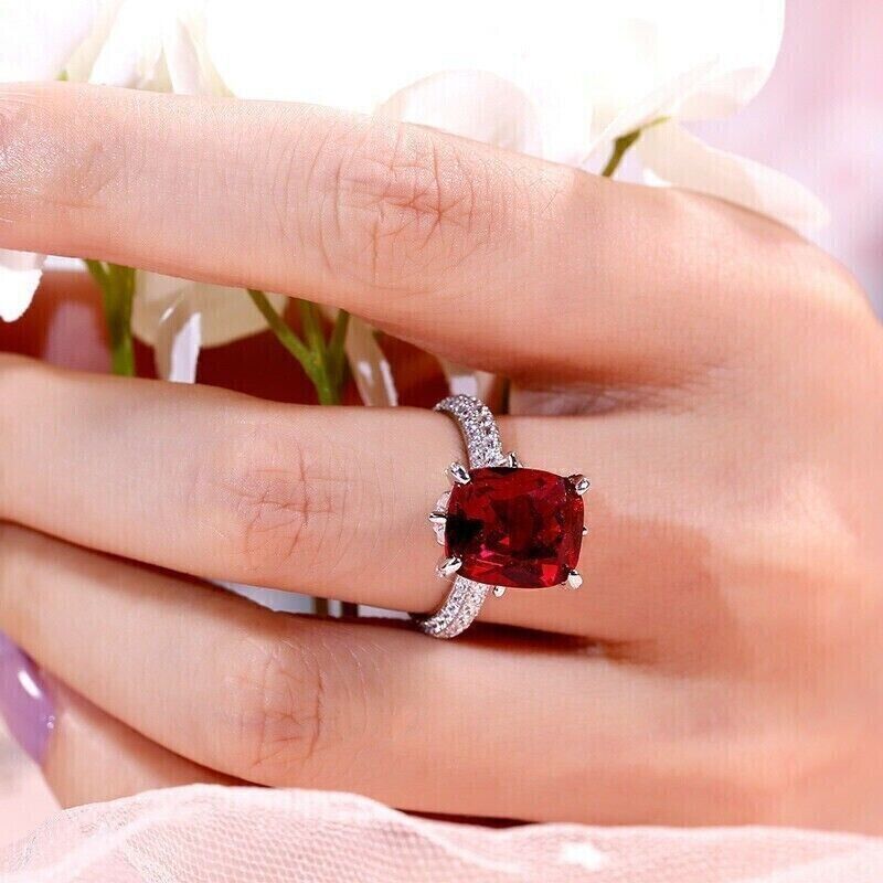 2.50Ct Cushion Cut CZ Garnet Solitaire Women's Ring 14K White Gold Plated