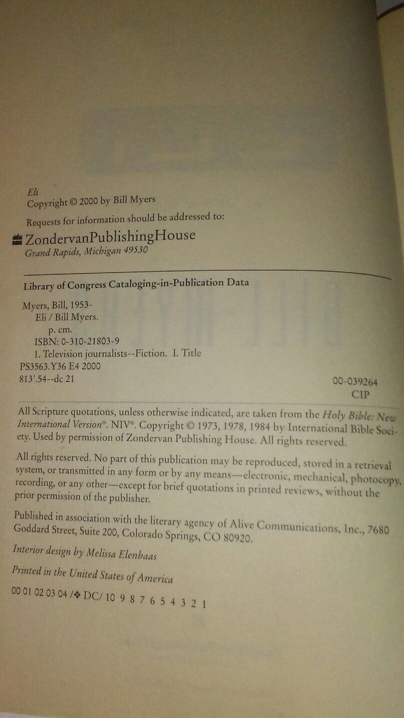 **EX-LIBRARY**Eli, Myers, Bill, 0310218039, Book, Acceptable