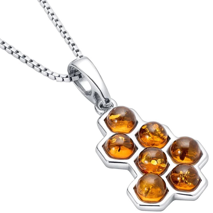 This versatile pendant features a honeycomb design and natural Baltic Amber gemstones in .925 sterling silver.
